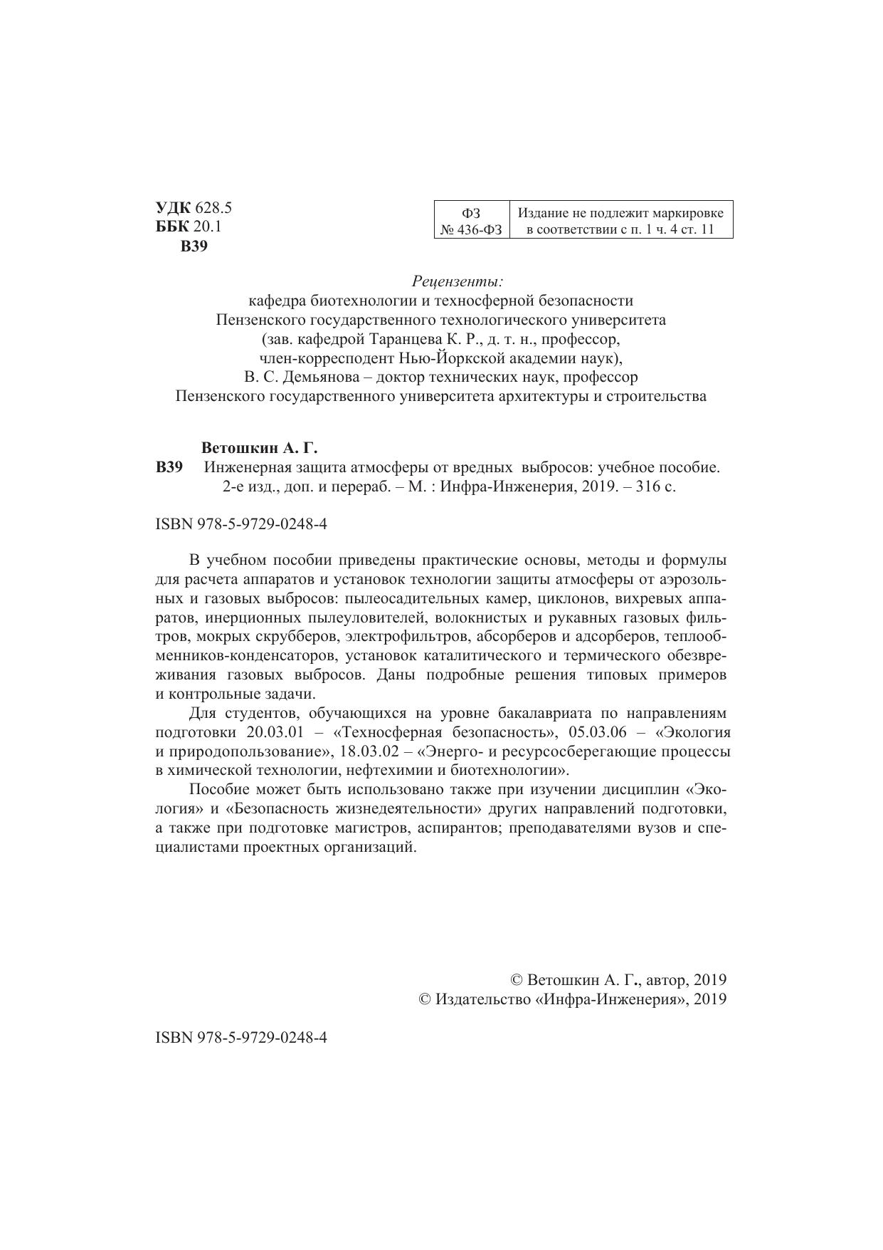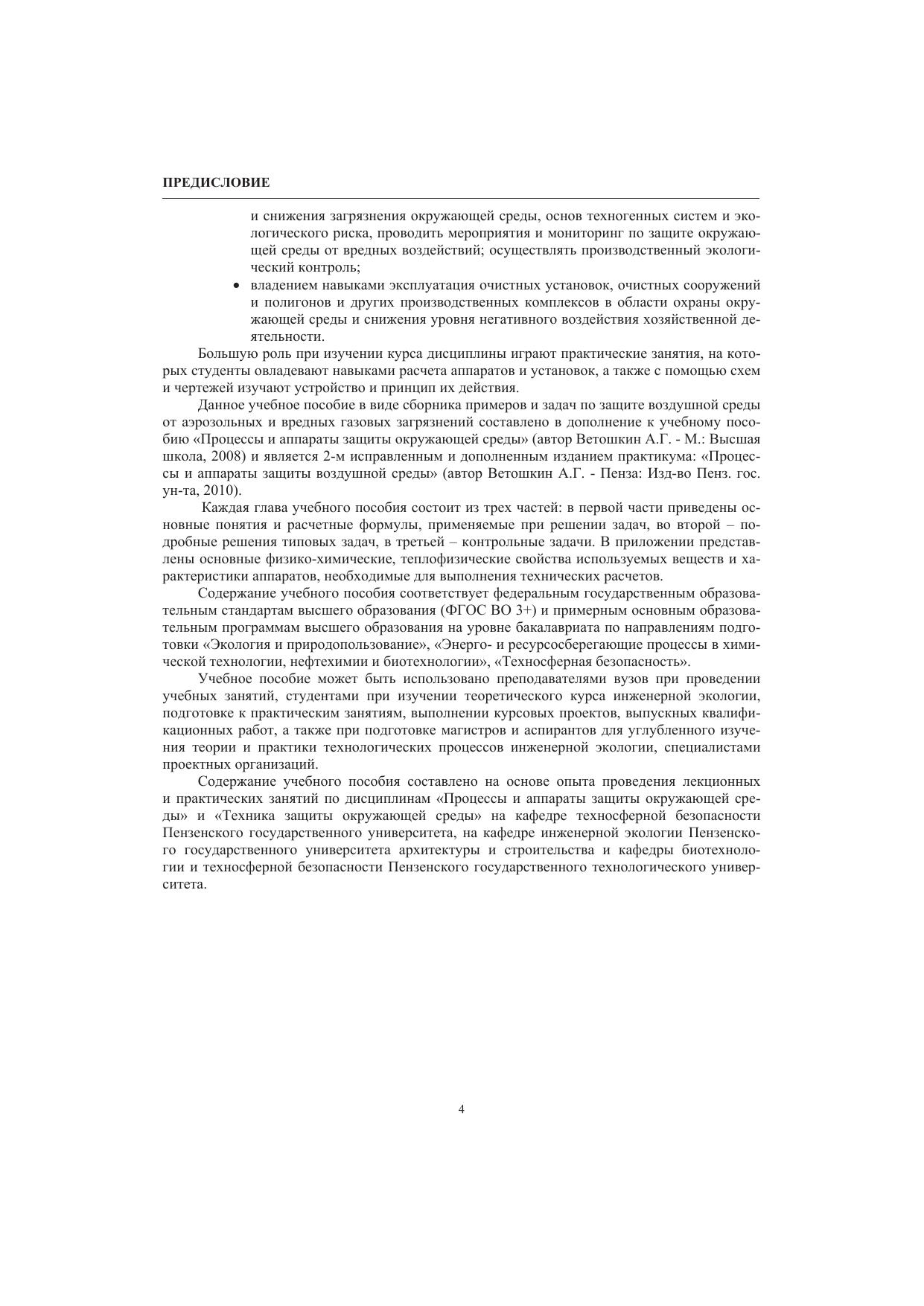 Для студентов, обучающихся на уровне бакалавриата по направлениям подготовки «Техносферная безопасность», «Экология и природопользование», «Энерго- и ресурсосберегающие процессы в химической технологии, нефтехимии и биотехнологии». Пособие может быть использовано при изучении дисциплин «Экология» и «Безопасность жизнедеятельности» других направлений подготовки, при подготовке магистров, аспирантов, а также преподавателями вузов и специалистами проектных организаций.