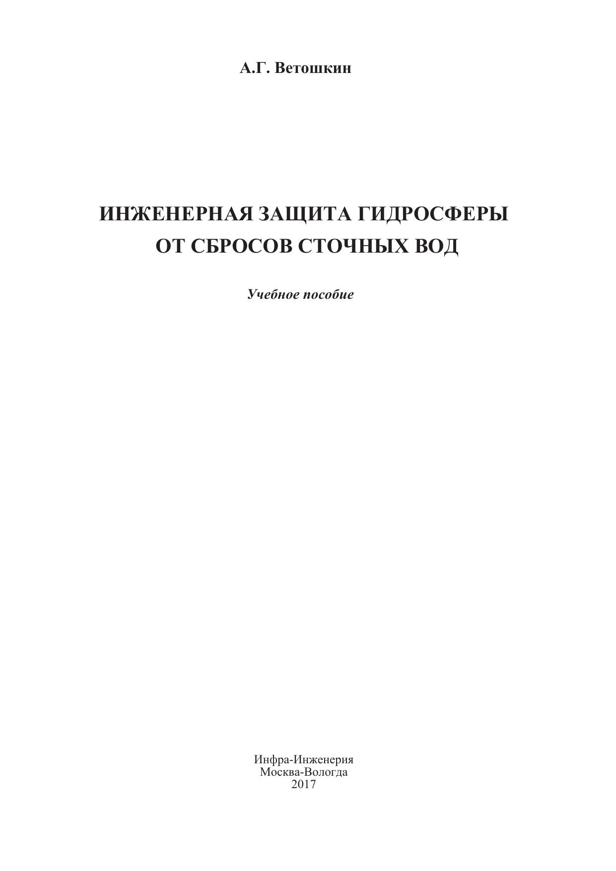 Инженерная защита гидросферы от сбросов сточных вод. Учебное пособие