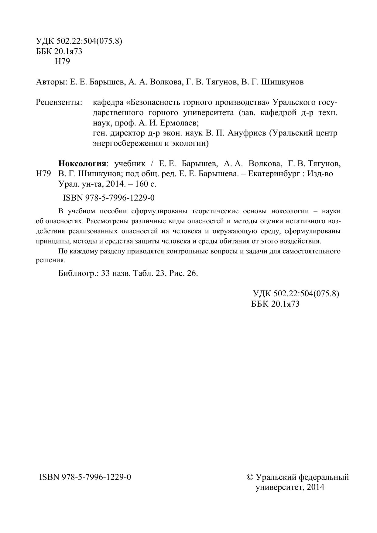 В учебном пособии сформулированы теоретические основы ноксологии – науки об опасностях. Рассмотрены различные виды опасностей и методы оценки негативного воздействия реализованных опасностей на человека и окружающую среду, сформулированы принципы, методы и средства защиты человека и среды обитания от этого воздействия. По каждому разделу приводятся контрольные вопросы и задачи для самостоятельного решения.