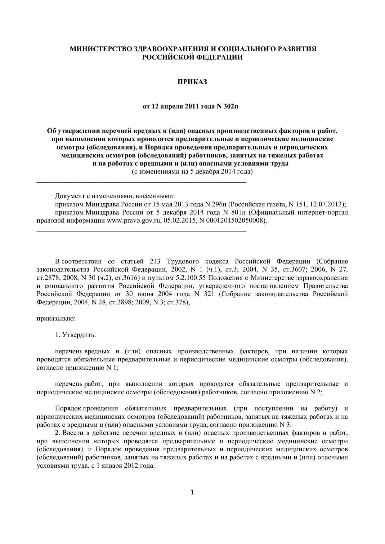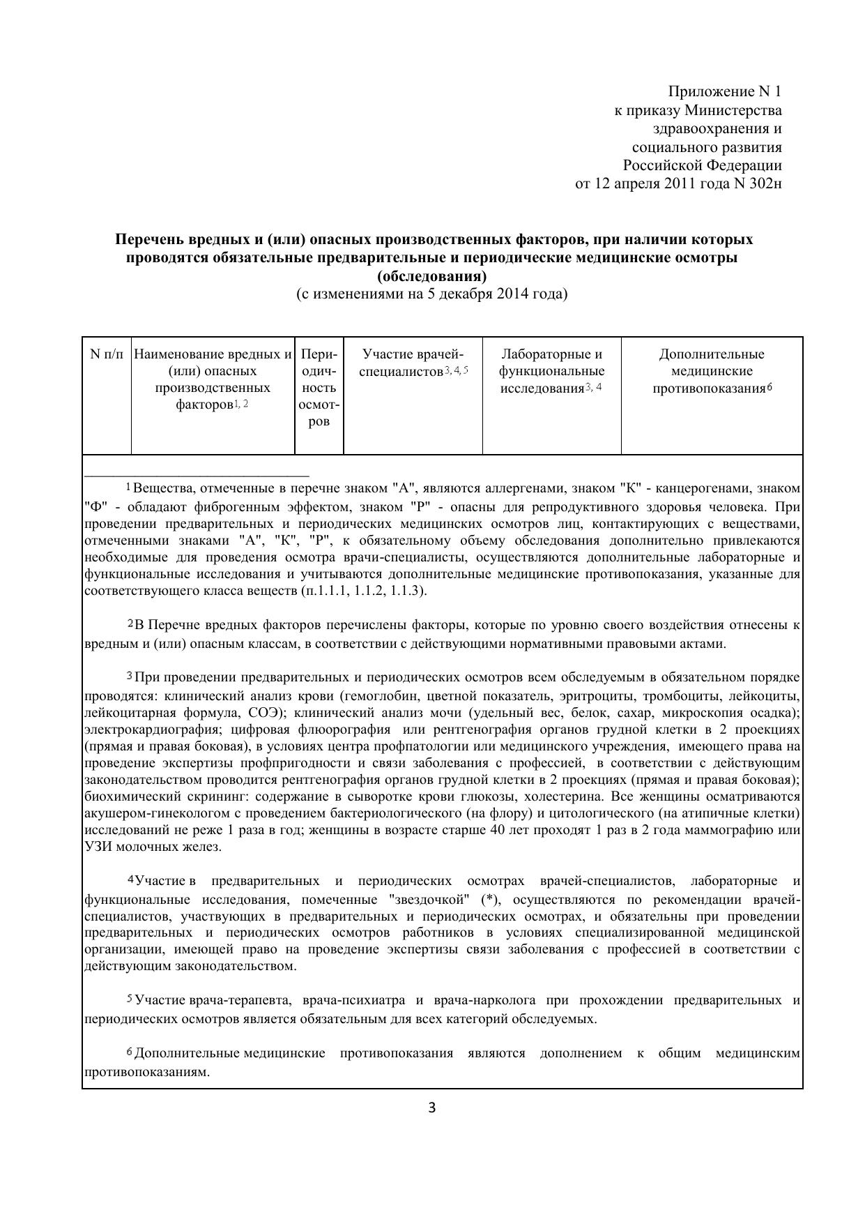 Об утверждении перечней вредных и (или) опасных производственных факторов и работ, при выполнении которых проводятся предварительные и периодические медицинские осмотры (обследования), и Порядка проведения предварительных и периодических медицинских осмотров (обследований) работников, занятых на тяжелых работах и на работах с вредными и (или) опасными условиями труда (с изменениями на 5 декабря 2014 года)