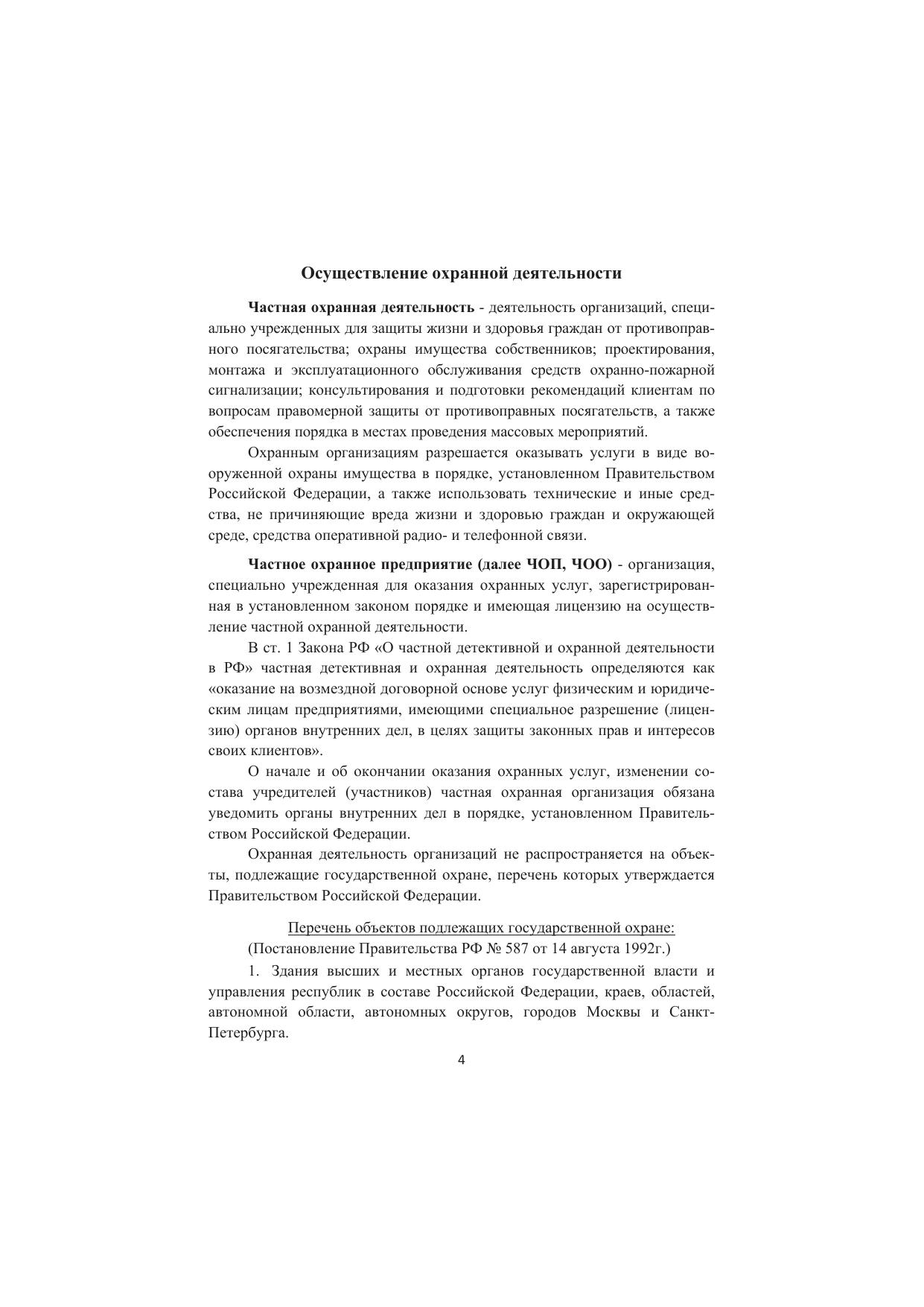 В пособии проанализированы действующие правила осуществления и организационно-правовые основы частной охранной деятельности, уделено внимание основополагающим нормативным актам, рассмотрены должностные обязанности руководителей и сотрудников охраны. Приводятся рекомендации, применяющиеся на практике. Издание предназначено всем субъектам отношений, связанных с охранной деятельностью в сфере предпринимательства - руководителям и специалистам охранных организаций, частным охранникам, сотрудникам органов внутренних дел, заказчикам охранных услуг - руководителям предприятий и организаций, индивидуальным предпринимателям, гражданам, которые пользуются указанными услугами, а также преподавателям, осуществляющих подготовку и повышение квалификации специалистов соответствующего профиля.
