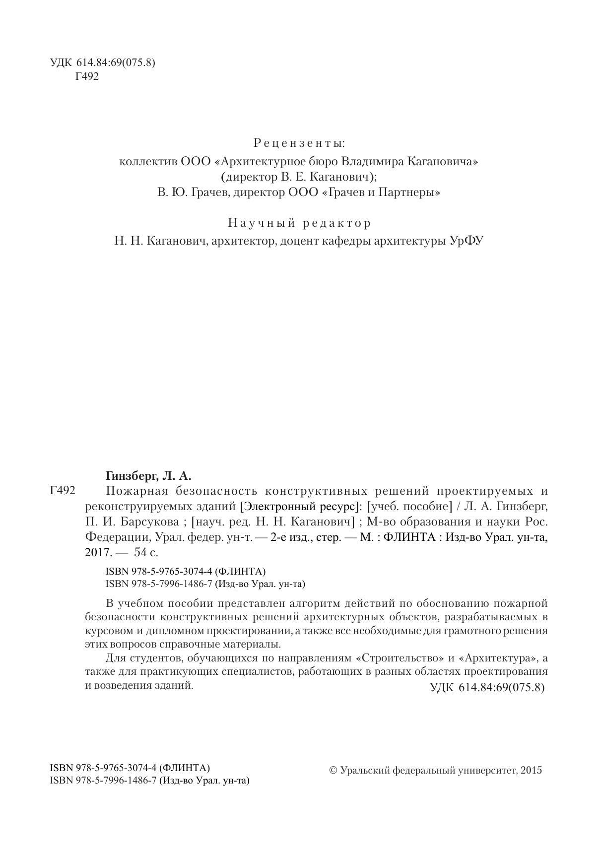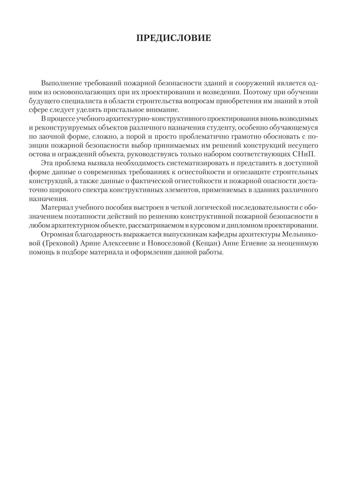 В учебном пособии представлен алгоритм действий по обоснованию пожарной безопасности конструктивных решений архитектурных объектов, разрабатываемых в курсовом и дипломном проектировании, а также все необходимые для грамотного решения этих вопросов справочные материалы. Для студентов, обучающихся по направлениям «строительство» и «архитектура», а также для практикующих специалистов, работающих в разных областях проектирования и возведения зданий.