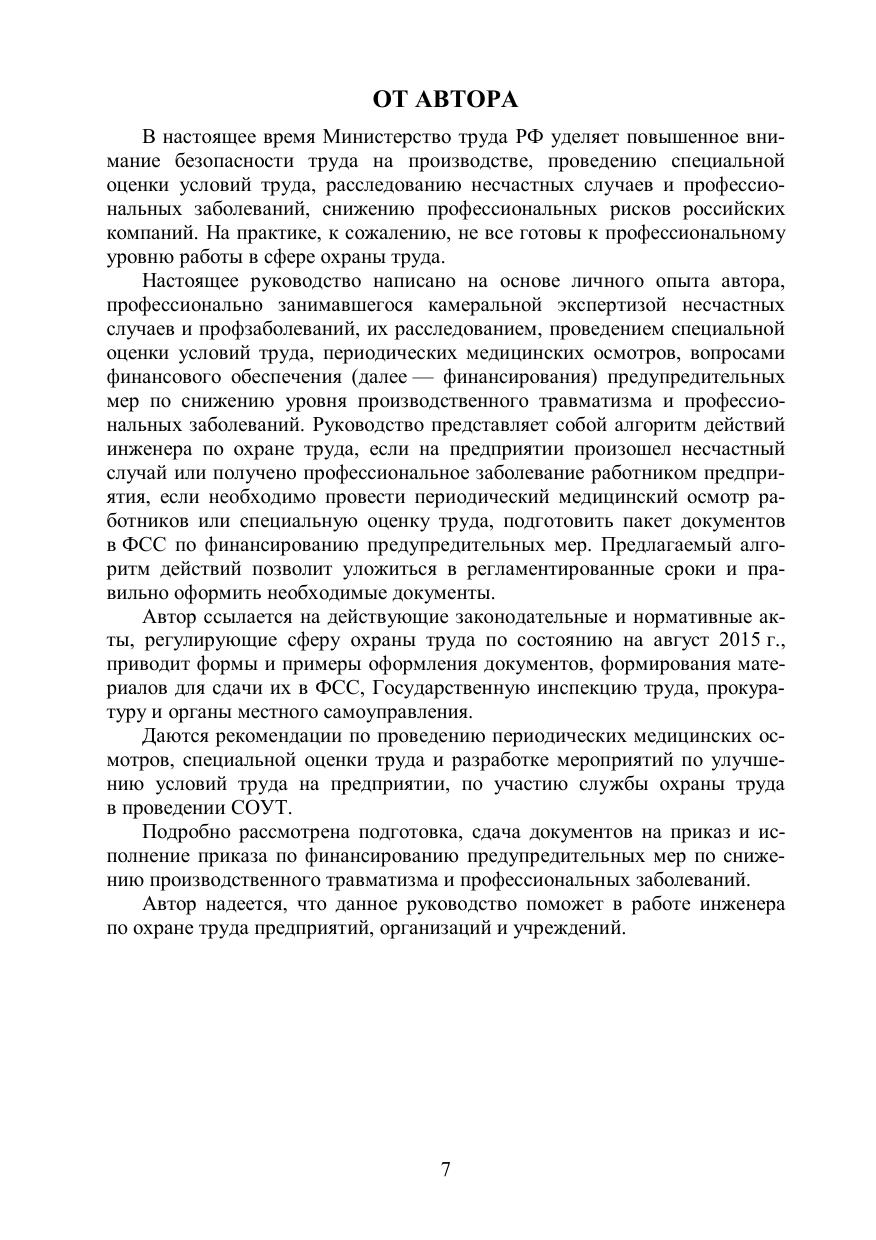 Настоящее руководство написано на основе личного опыта автора, профессионально занимавшегося камеральной экспертизой несчастных случаев и профзаболеваний, их расследованием, проведением специальной оценки условий труда, периодических медицинских осмотров, вопросами финансового обеспечения предупредительных мер по снижению уровня производственного травматизма и профессиональных заболеваний.