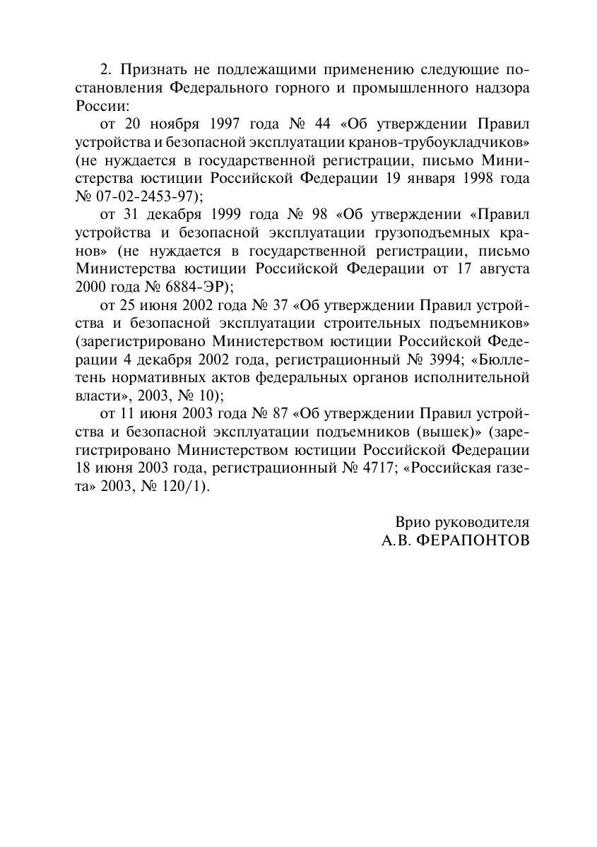 Правила безопасности опасных производственных объектов, на которых используются подъемные сооружения