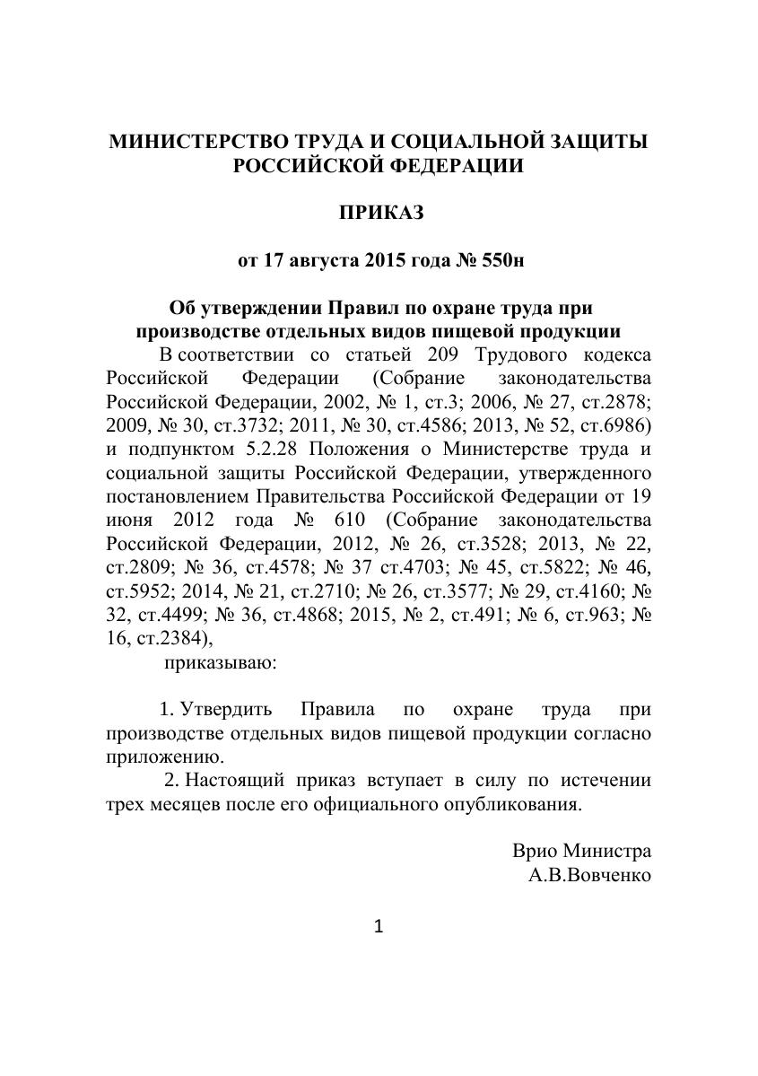 Правила по охране труда при производстве отдельных видов пищевой продукции
