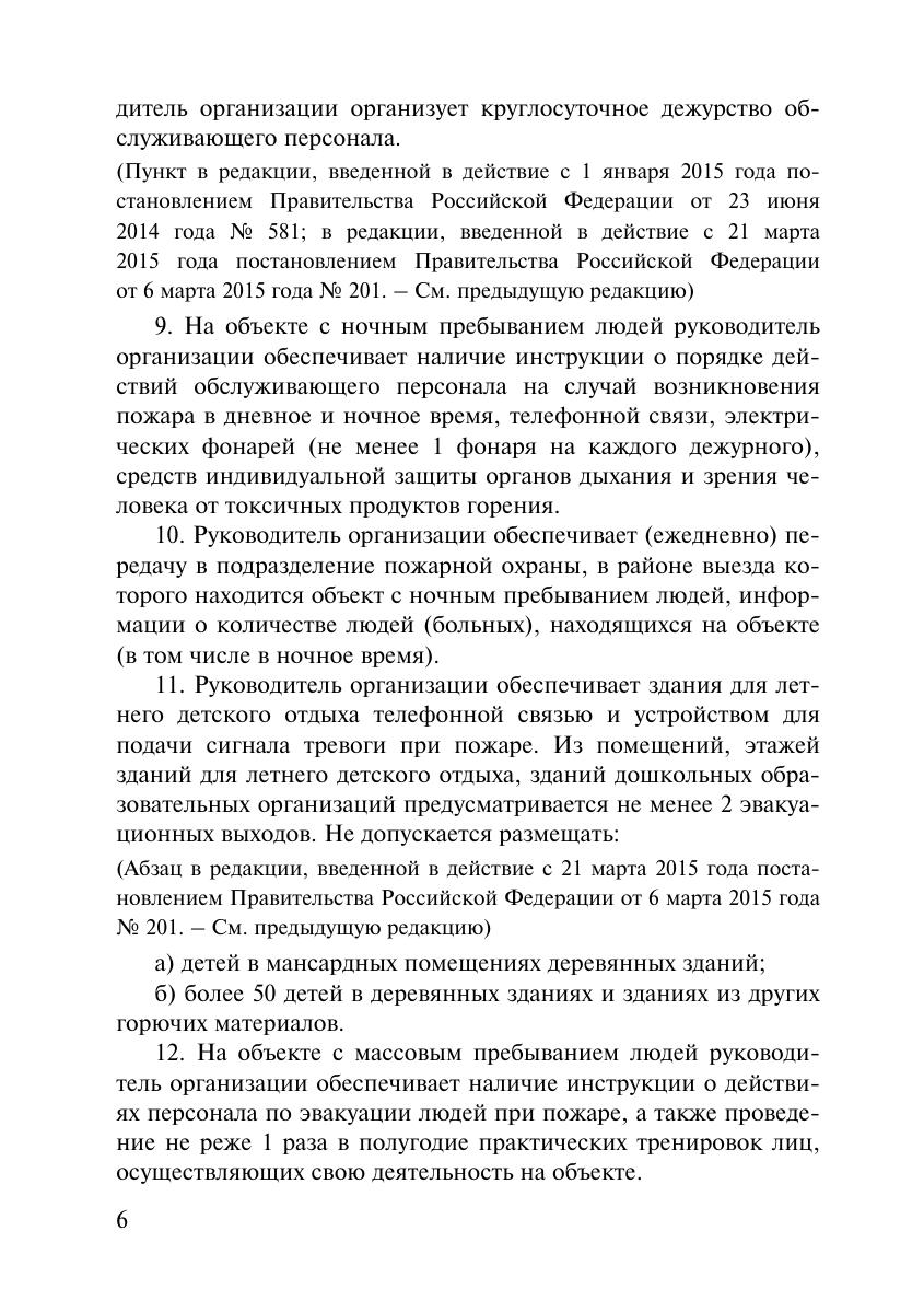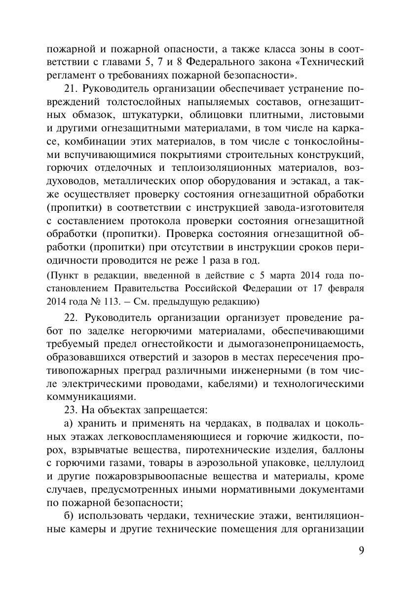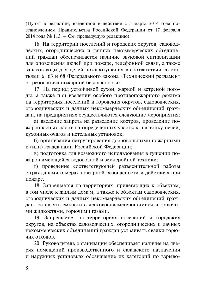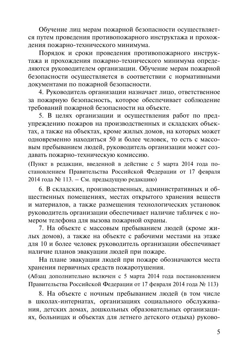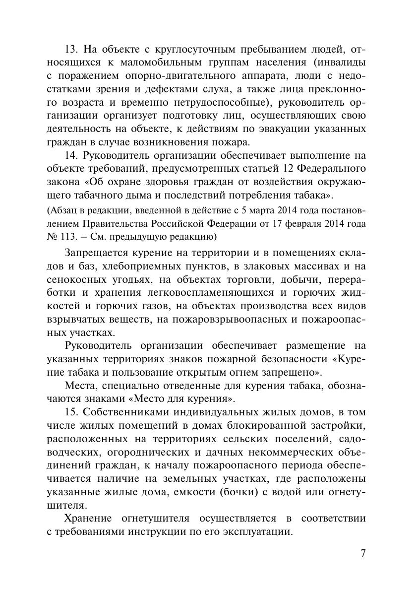 Правила противопожарного режима в Российской Федерации утверждены постановлением Правительства Российской Федерации от 25 апреля 2012 г. № 390. Правила содержат требования пожарной безопасности, устанавливающие правила поведения людей, порядок организации производства и (или) содержания территорий, зданий, сооружений, помещений организаций и других объектов в целях обеспечения пожарной безопасности. В настоящее издание включены изменения, внесенные: