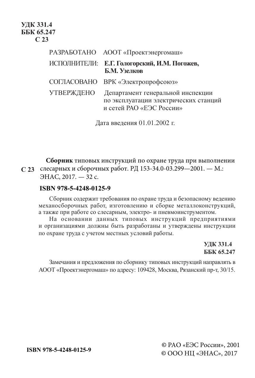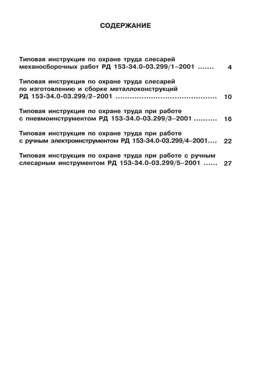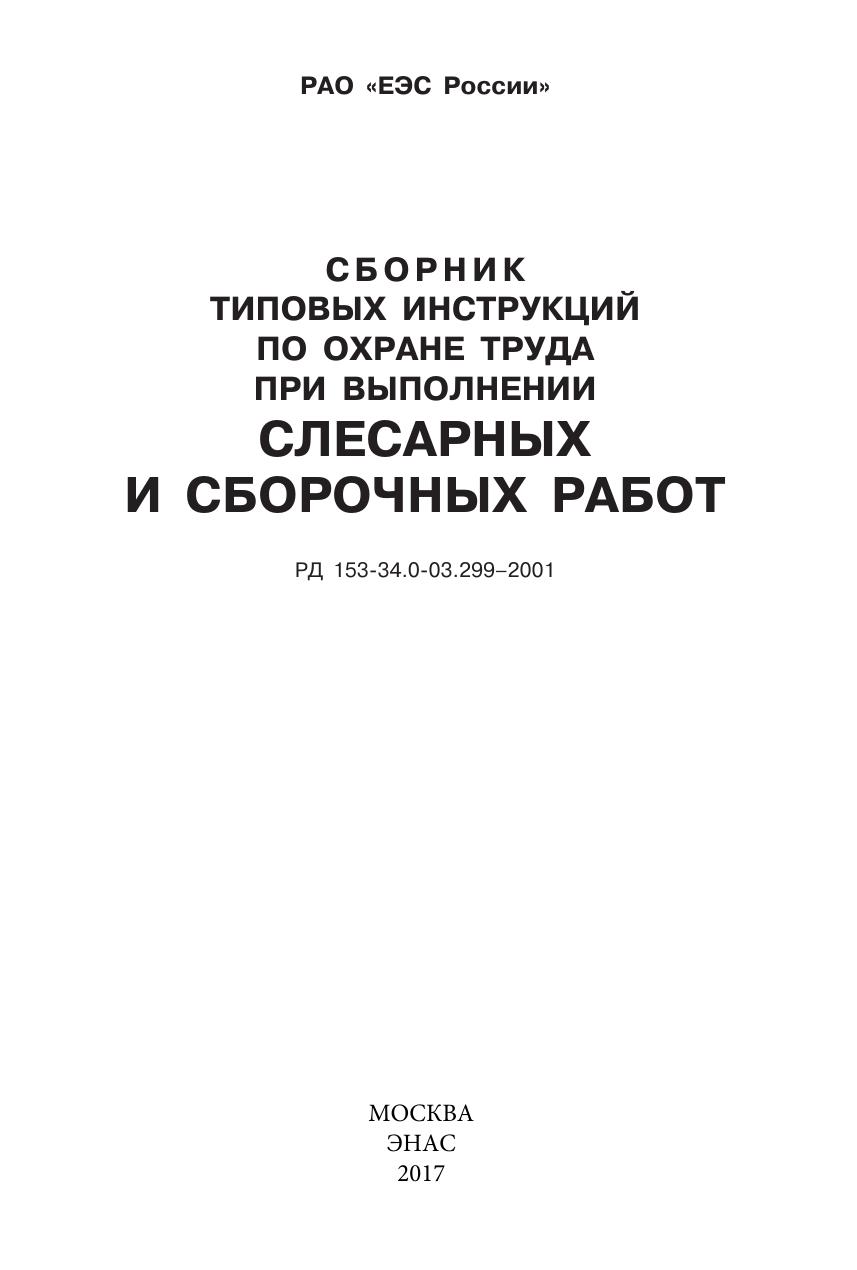 Сборник типовых инструкций по охране труда при выполнении слесарных и сборочных работ. РД 153-34.0-03.299—2001