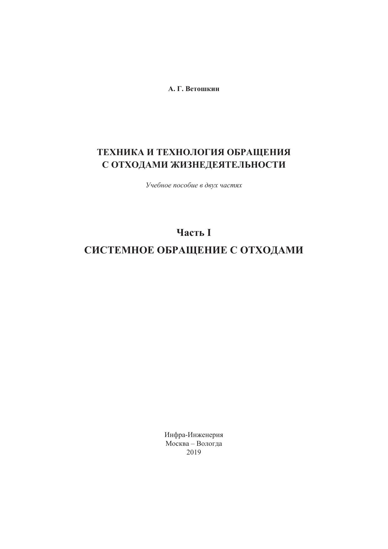 Техника и технология обращения с отходами жизнедеятельности. В 2-х частях. Ч. 1. Системное обращение с отходами
