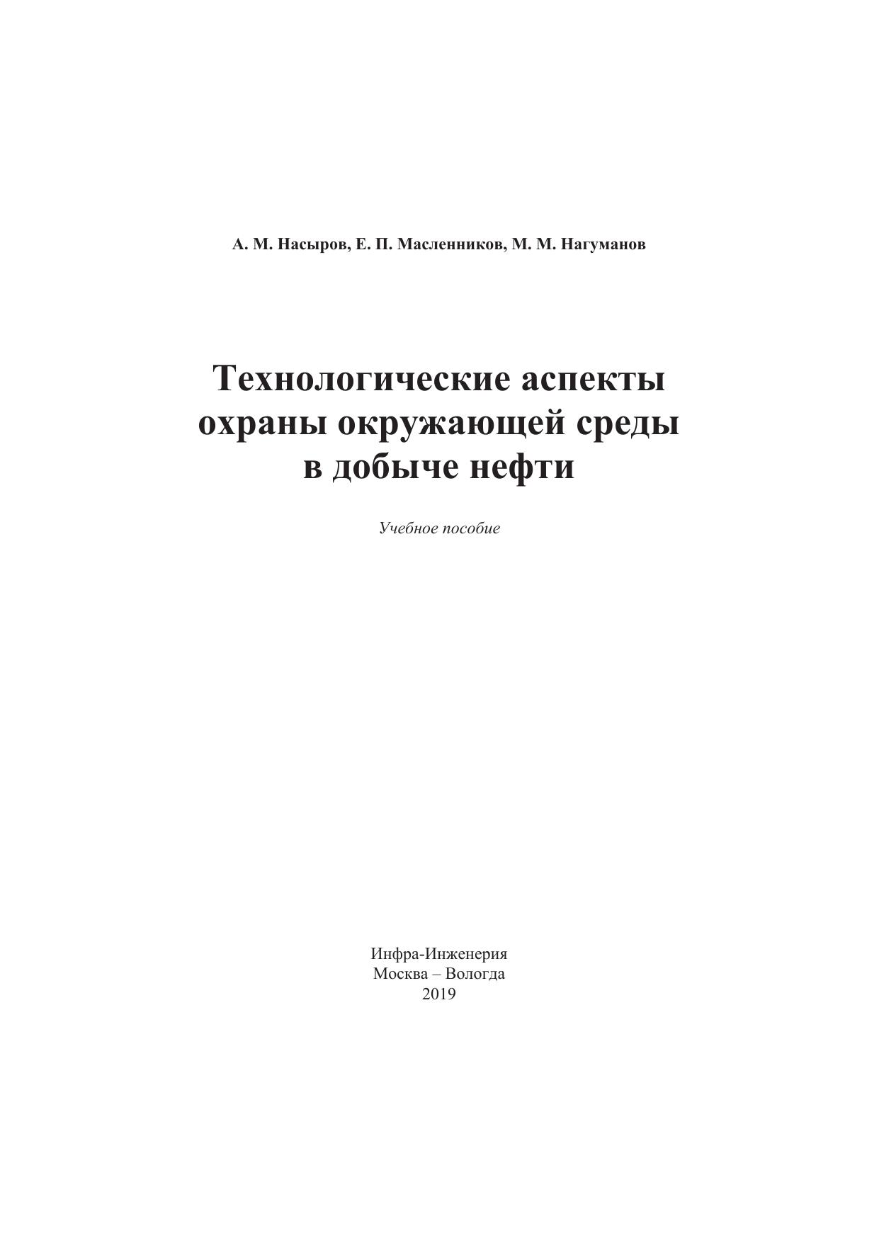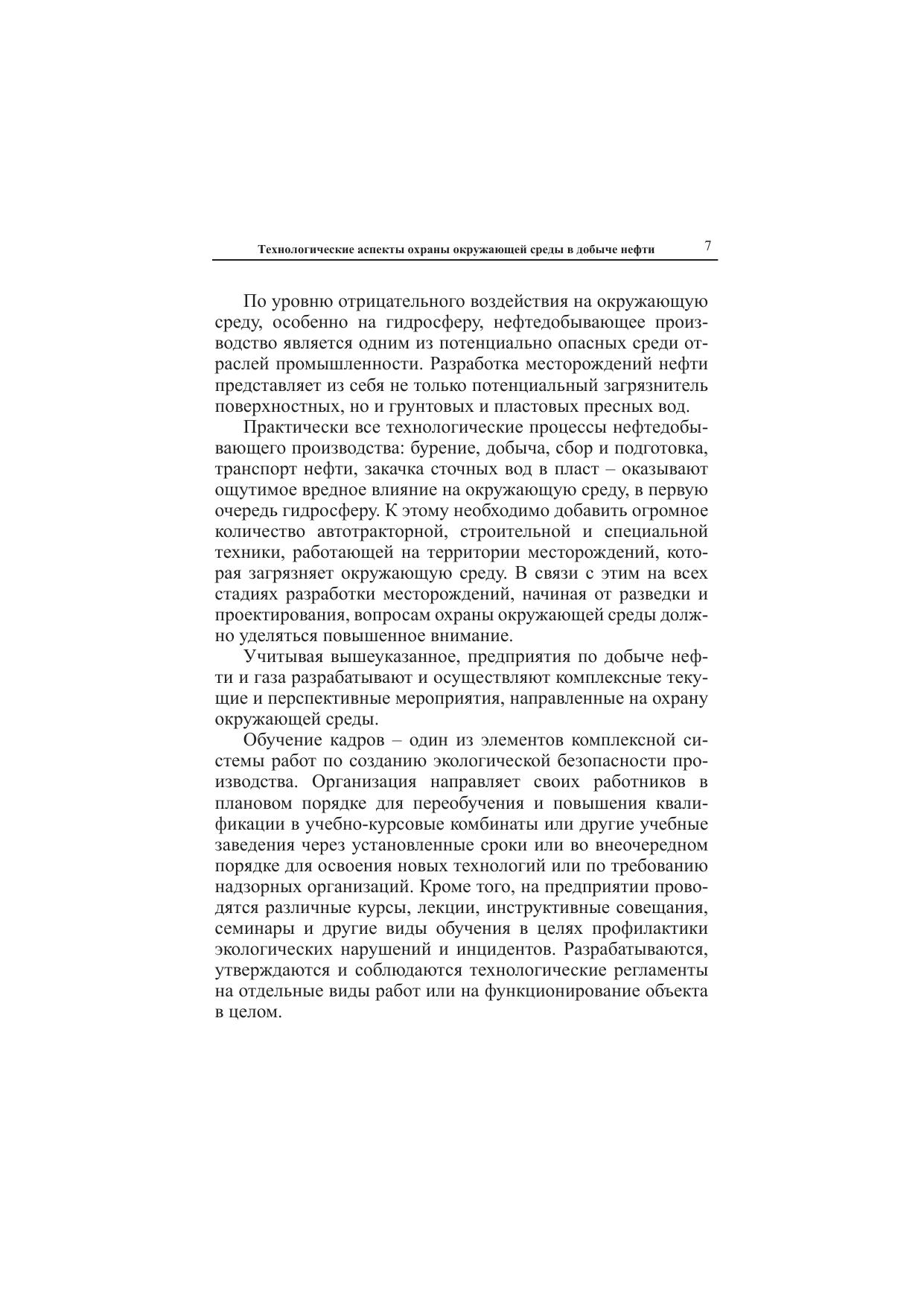 Рассмотрен весь комплекс основных технических, технологических методов и способов, снижающих отрицательное влияние на окружающую среду на нефтепромыслах при проектировании, обустройстве, эксплуатации и ремонте объектов добычи нефти.