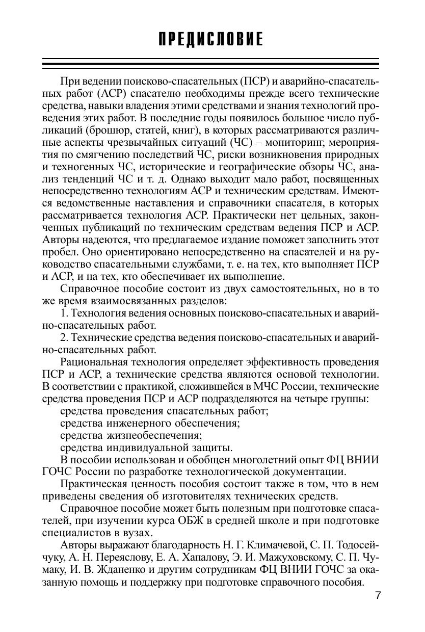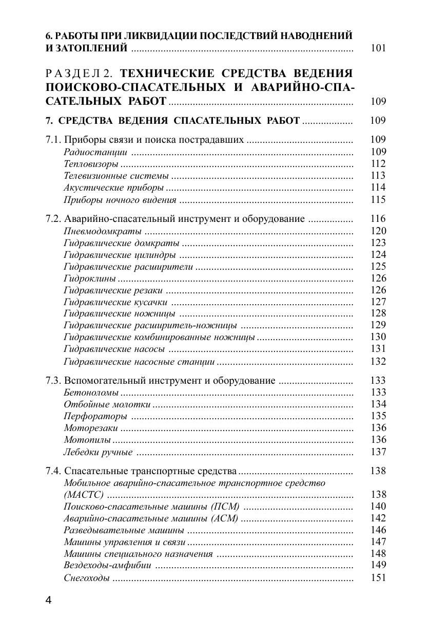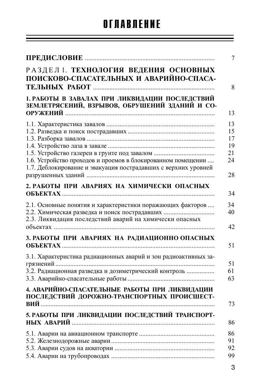 Изложена технология проведения поисково- и аварийно-спасательных работ в завалах, при ликвидации последствий наводнений, дорожно-транспортных происшествий и аварий, при авариях на химически и радиационно опасных объектах. Даны технические характеристики средств ведения спасательных работ, инженерного обеспечения, жизнеобеспечения и индивидуальной защиты.
