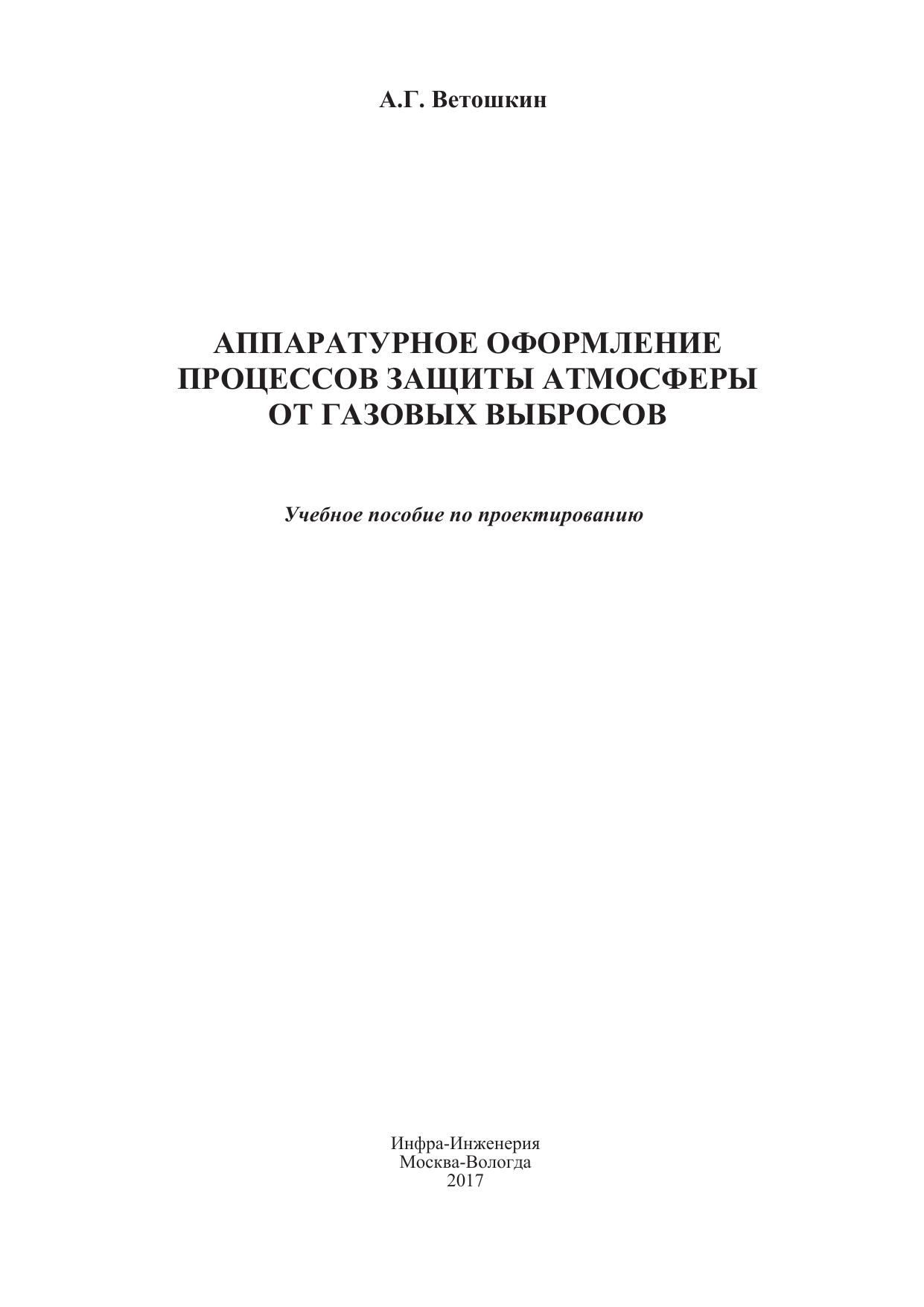 Аппаратурное оформление процессов защиты атмосферы от газовых выбросов. Учебное пособие