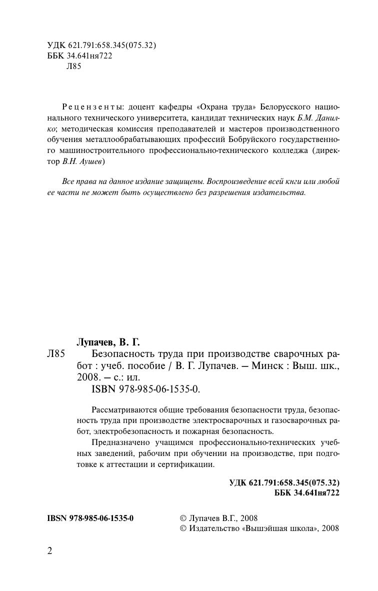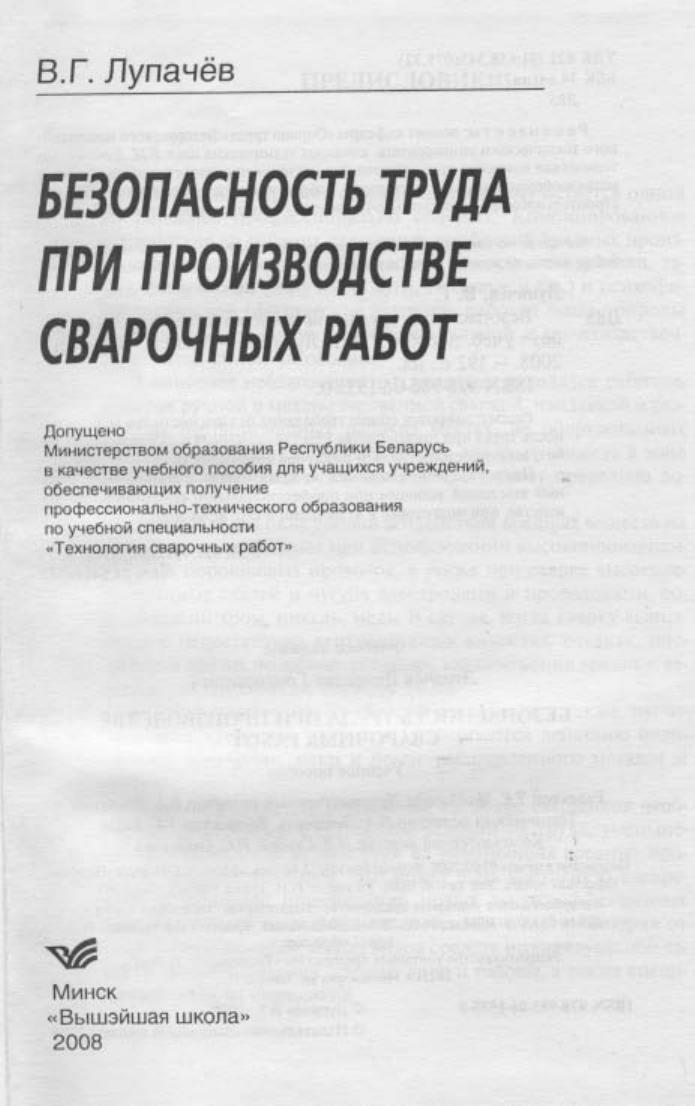 Рассматриваются общие требования безопасности труда, безопасность труда при производстве электросварочных и газосварочных работ, электробезопасность и пожарная безопасность. Для учащихся ПТУ. Может быть использовано при профессиональном обучении рабочих на производстве, при подготовке к аттестации и сертификации.