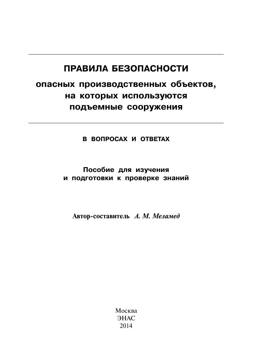 Правила безопасности опасных производственных объектов, на которых используются подъемные сооружения, в вопросах и ответах: пособие для изучения и подготовки к проверке знаний