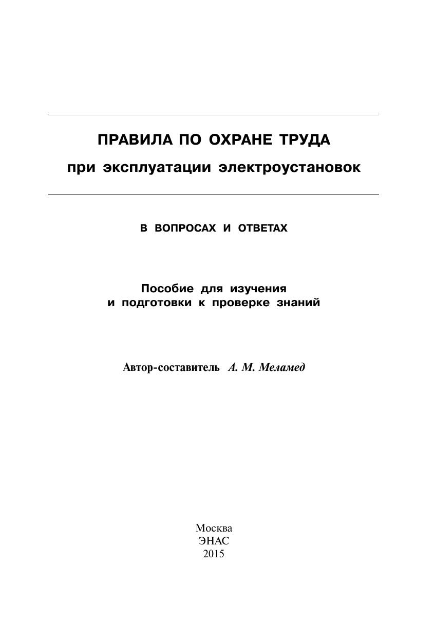 Правила по охране труда при эксплуатации электроустановок в вопросах и ответах: пособие для изучения и подготовки к проверке знаний