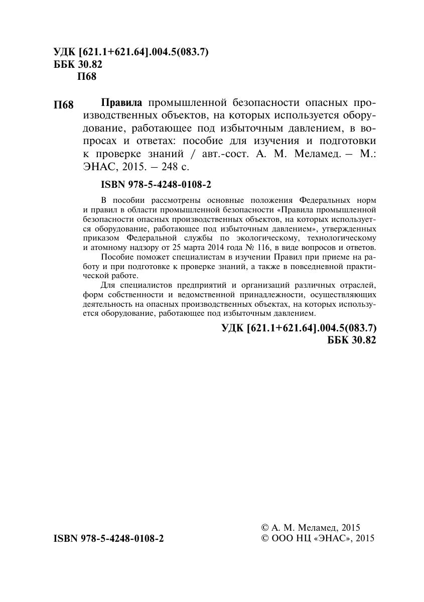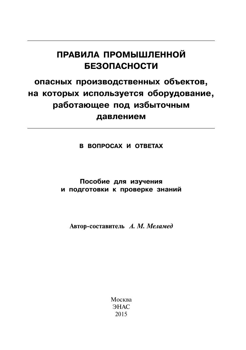 Правила промышленной безопасности опасных производственных объектов, на которых используется оборудование, работающее под избыточным давлением, в вопросах и ответах: пособие для изучения и подготовки к проверке знаний