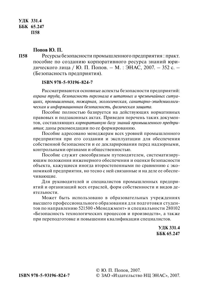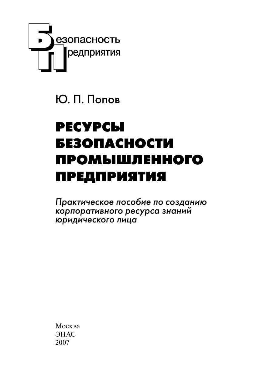 Ресурсы безопасности промышленного предприятия : Практическое пособие по созданию корпоративного ресурса знаний юридического лица