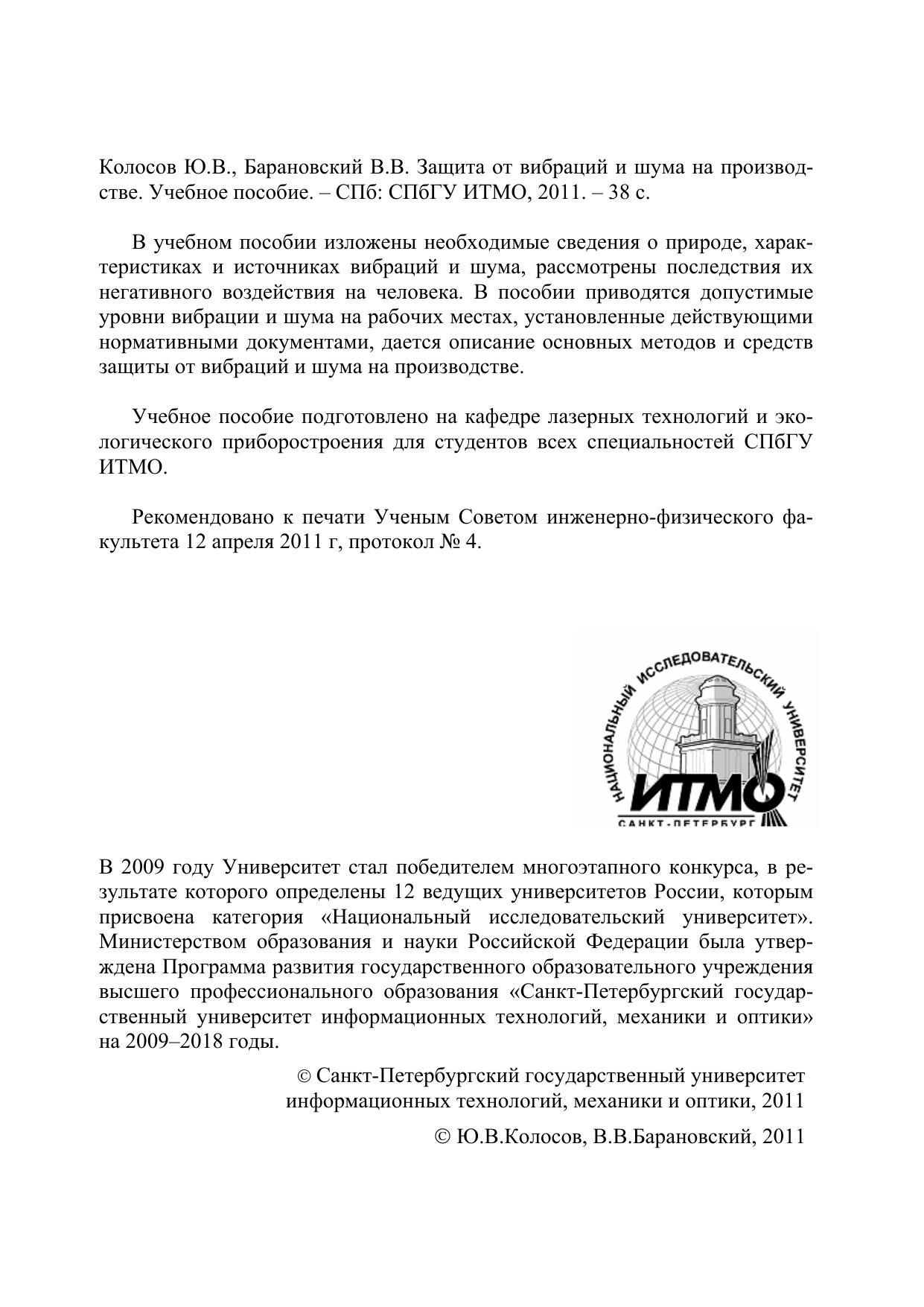 В учебном пособии изложены необходимые сведения о природе, характеристиках и источниках вибраций и шума, рассмотрены последствия их негативного воздействия на человека. В пособии приводятся допустимые уровни вибрации и шума на рабочих местах, установленные действующими нормативными документами, дается описание основных методов и средств защиты от вибраций и шума на производстве.