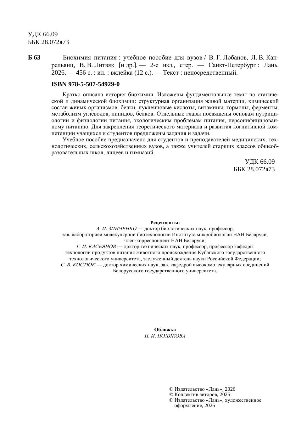 Кратко описана история биохимии. Изложены фундаментальные темы по статической и динамической биохимии: структурная организация живой материи, химический состав живых организмов, белки, нуклеиновые кислоты, витамины, гормоны, ферменты, метаболизм углеводов, липидов, белков. Отдельные главы посвящены основам нутрициологии и физиологии питания, экологическим проблемам питания, персонифицированному питанию. Для закрепления теоретического материала и развития когнитивной компетенции учащихся и студентов предложены задания и задачи. Учебное пособие предназначено для студентов и преподавателей медицинских, технологических, сельскохозяйственных вузов, а также учителей старших классов общеобразовательных школ, лицеев и гимназий.