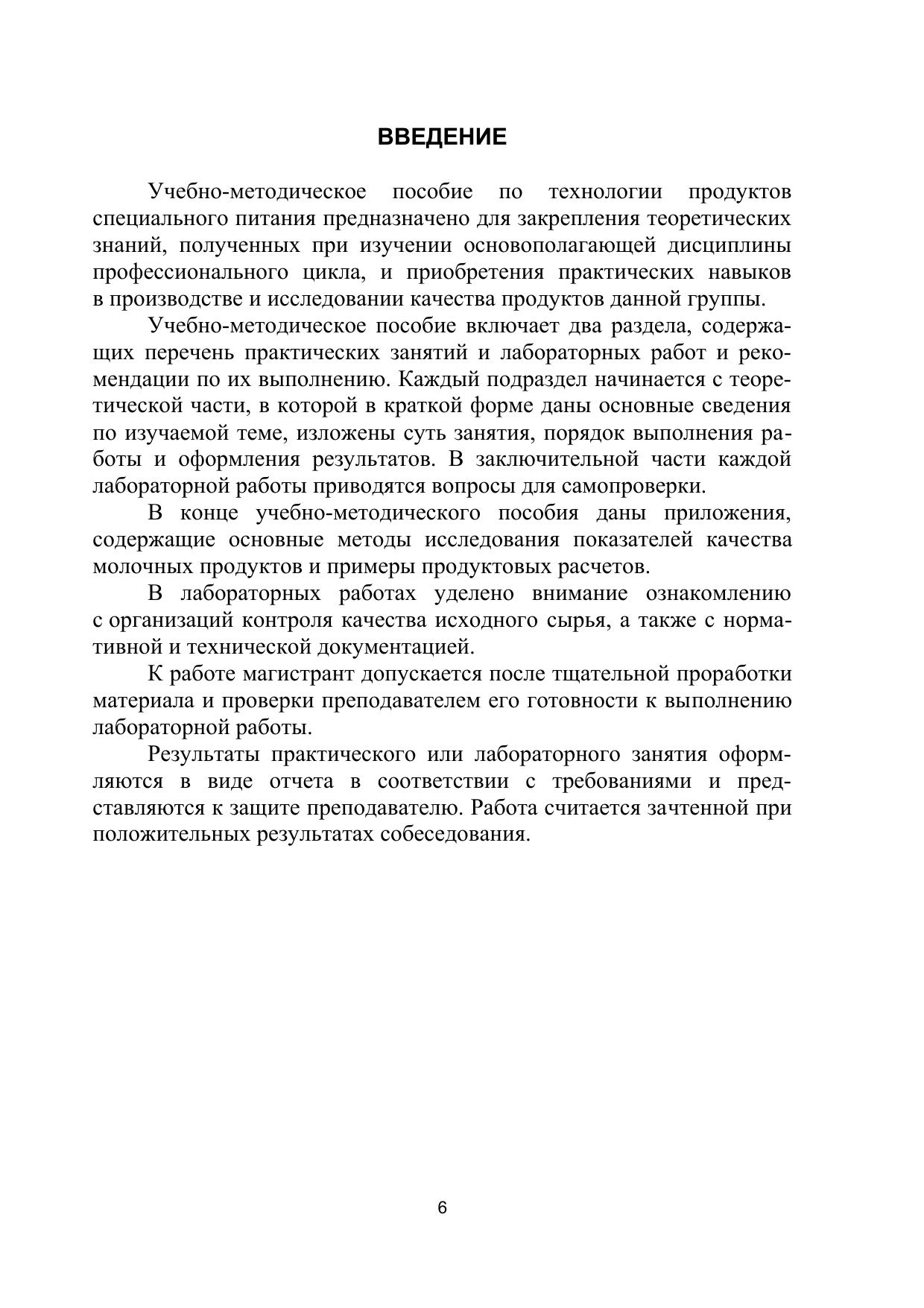 Приведены содержание и цель лабораторных работ и практических занятий по дисциплине, даны рекомендации по их выполнению, что поможет магистрантам усвоить сущность технологии основных видов продуктов специального питания, получить навыки проведения продуктовых расчетов и разработки технологических схем производства. Учебно-методическое пособие предназначено для магистрантов направления 260200 Продукты питания животного происхождения, обучающихся по программе магистерской подготовки «Биотехнология продуктов лечебного, специального и профилактического питания».