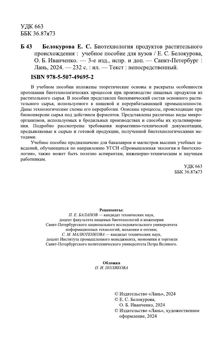 В учебном пособии изложены теоретические основы и раскрыты особенности протекания биотехнологических процессов при производстве пищевых продуктов из растительного сырья. В пособии представлен биохимический состав основного растительного сырья, используемого в пищевой и перерабатывающей промышленности. Даны технологические схемы его переработки. Описаны процессы, происходящие при биоконверсии сырья под действием ферментов. Представлены различные виды микроорганизмов, используемых в бродильных производствах, и способы их культивирования. Подробно рассмотрены требования нормативно-технической документации, предъявляемые к сырью и готовой продукции, полученной биотехнологическими методами. Учебное пособие предназначено для бакалавров и магистров высших учебных заведений, обучающихся по направлению УГСН «Промышленная экология и биотехнологии», также может быть полезно аспирантам, инженерно-техническим и научным работникам.