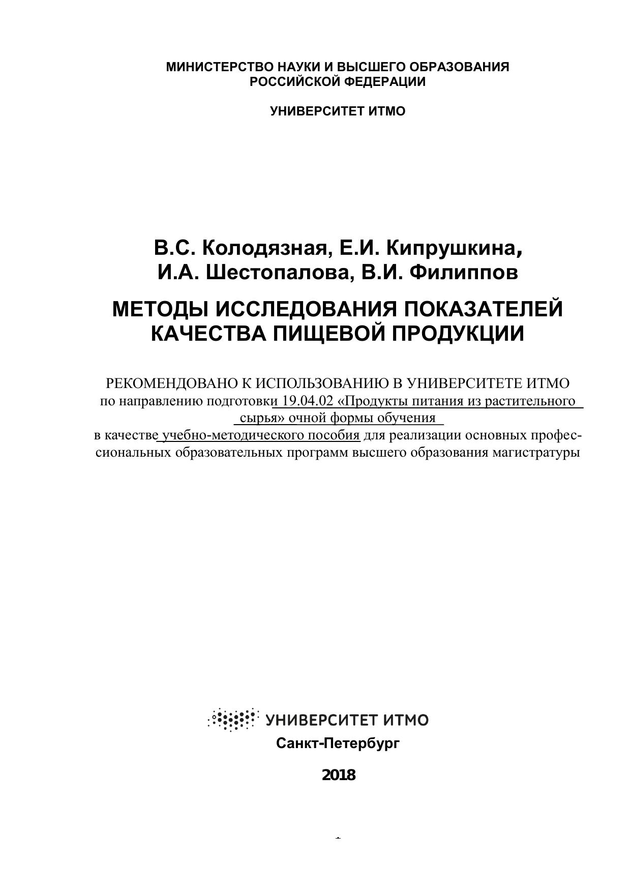 Методы исследования показателей качества пищевой продукции