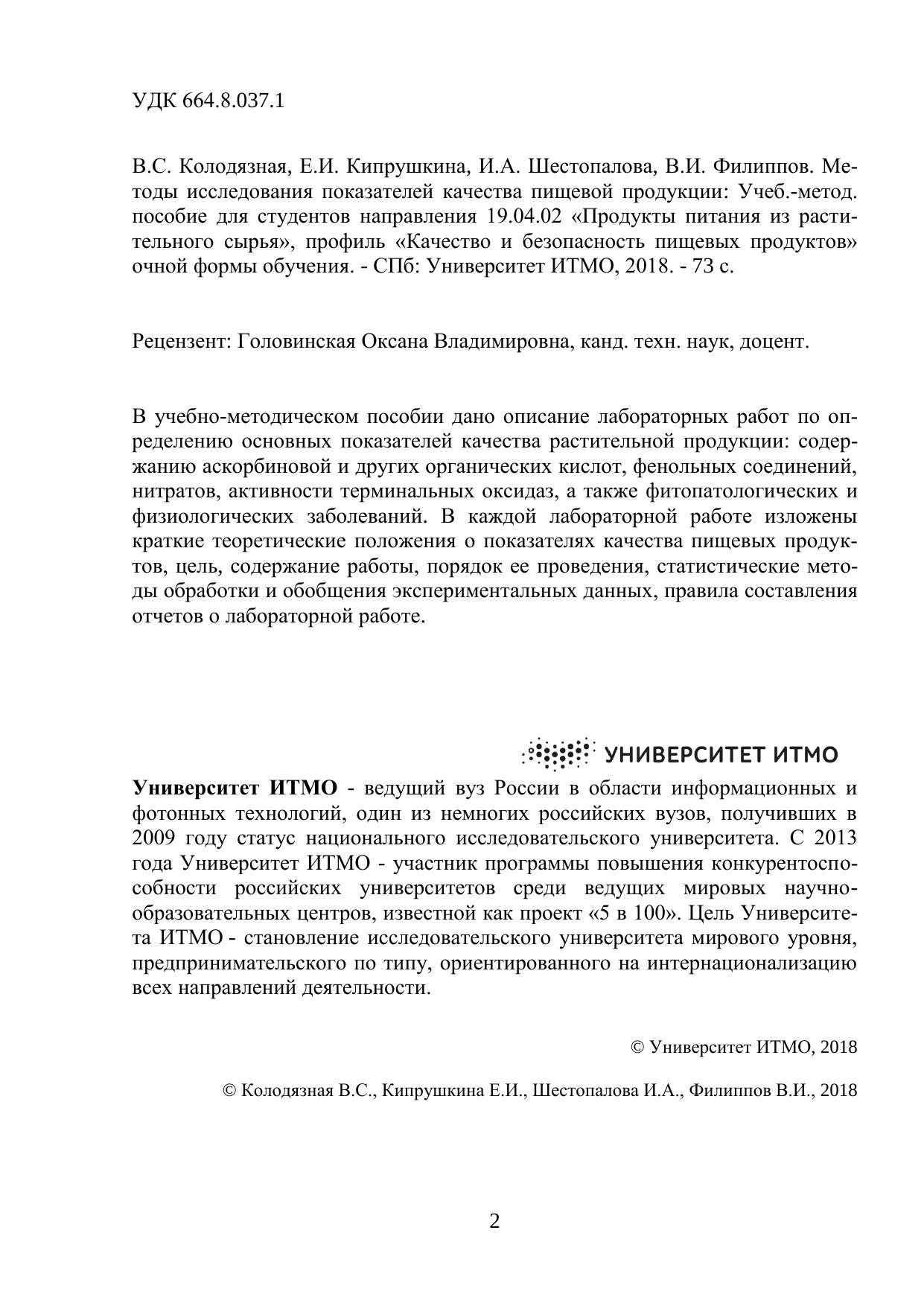 В учебно-методическом пособии дано описание лабораторных работ по определению основных показателей качества растительной продукции: содержанию аскорбиновой и других органических кислот, фенольных соединений, нитратов, активности терминальных оксидаз, а также фитопатологических и физиологических заболеваний. В каждой лабораторной работе изложены краткие теоретические положения о показателях качества пищевых продуктов, цель, содержание работы, порядок ее проведения, статистические методы обработки и обобщения экспериментальных данных, правила составления отчетов о лабораторной работе