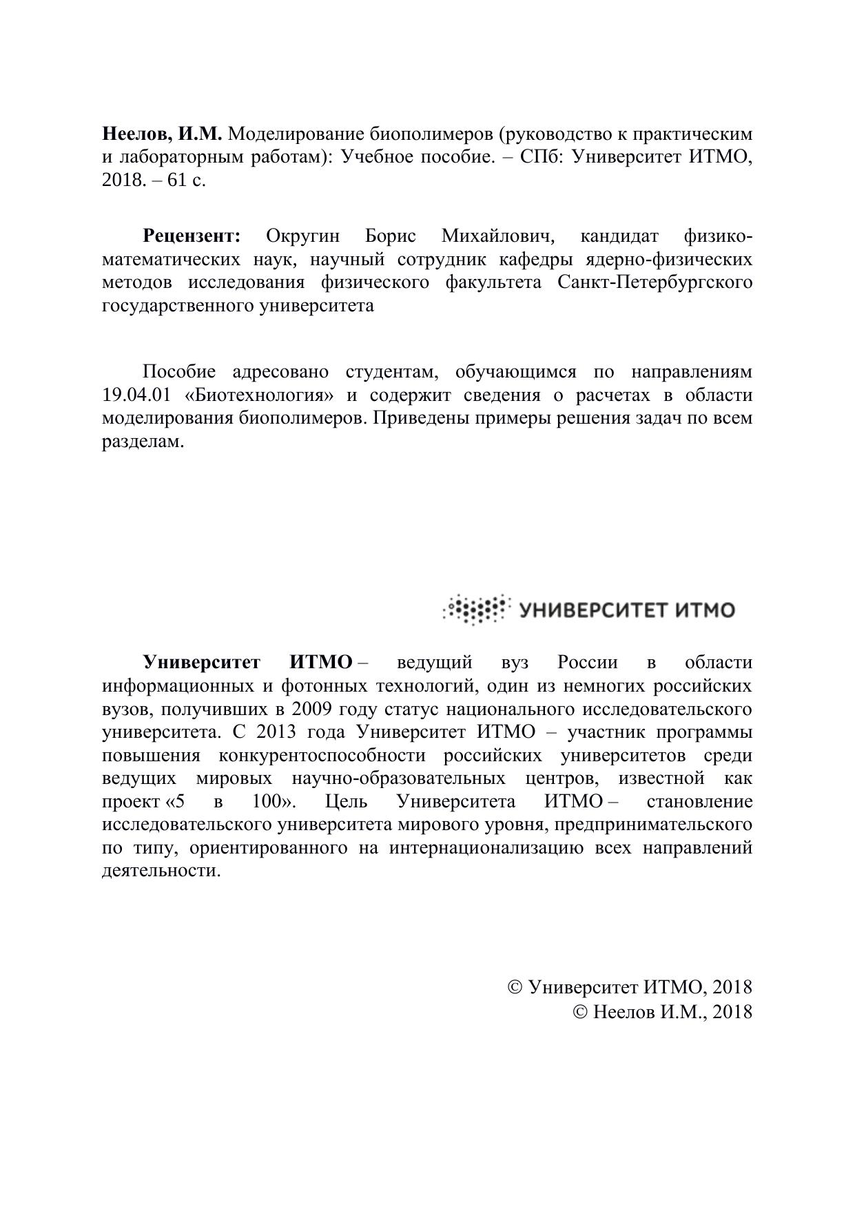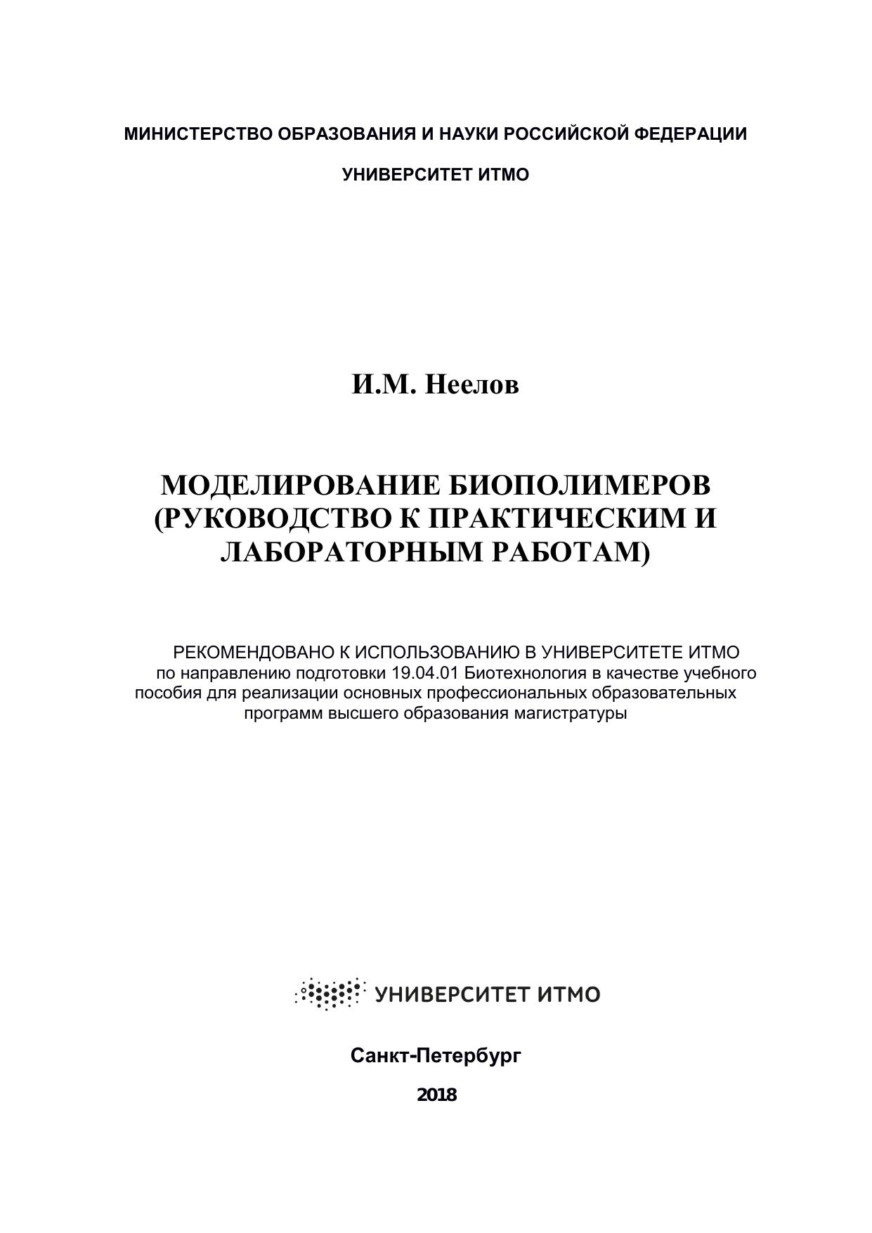 Пособие адресовано студентам, обучающимся по направлениям 19.04.01 «Биотехнология» и содержит сведения о расчетах в области моделирования биополимеров. Приведены примеры решения задач по всем разделам.
