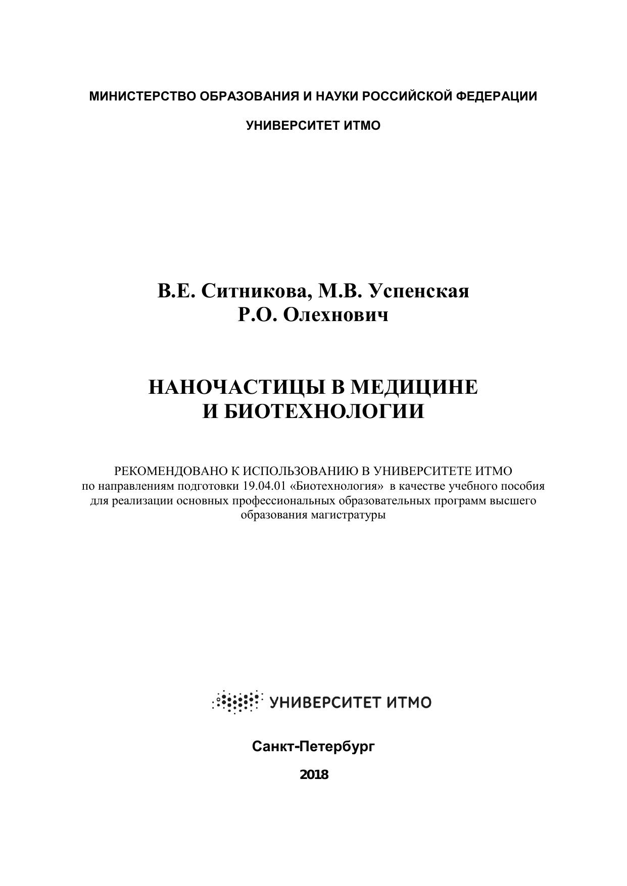 Пособие адресовано студентам, обучающимся по направлениям 19.04.01 «Биотехнология» и содержит сведения способах получения, свойствах и применении в медицине и биотехнологии наночастиц и наноматериалов.