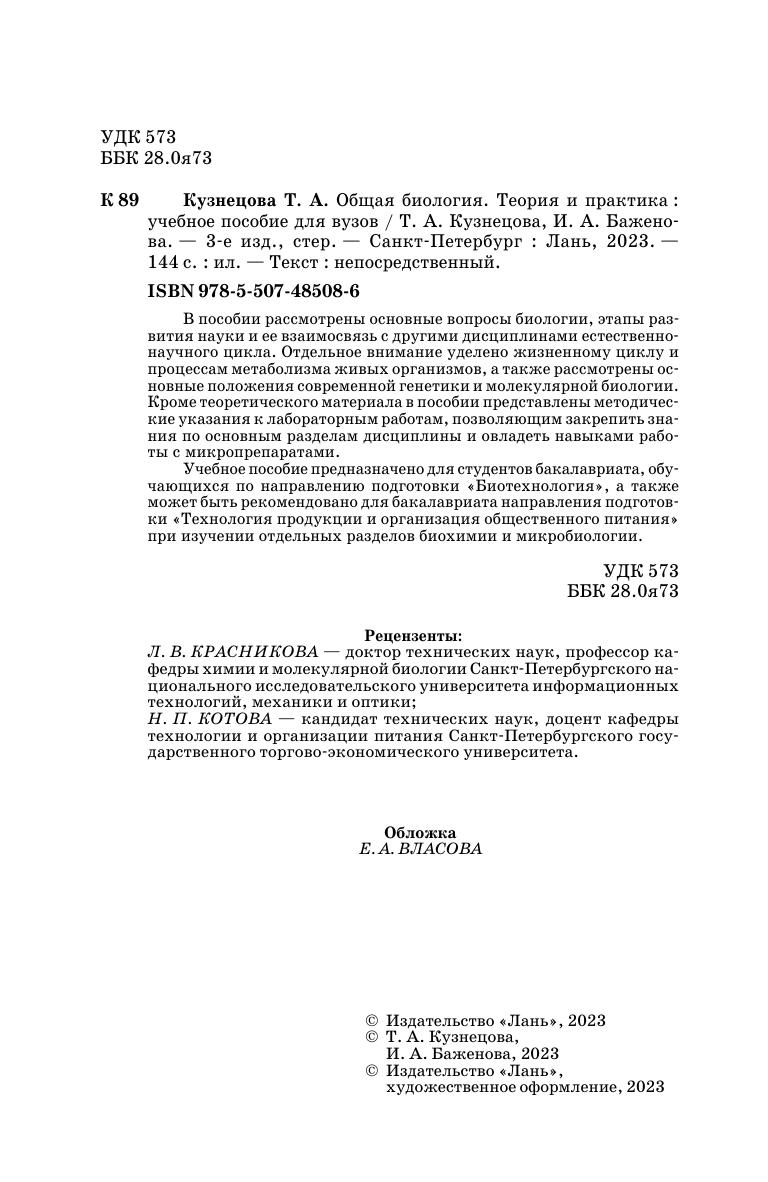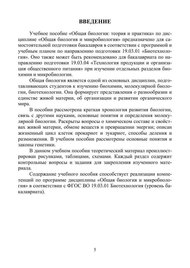 В пособии рассмотрены основные вопросы биологии, этапы развития науки и ее взаимосвязь с другими дисциплинами естественнонаучного цикла. Отдельное внимание уделено жизненному циклу и процессам метаболизма живых организмов, а также рассмотрены основные положения современной генетики и молекулярной биологии. Кроме теоретического материала в пособии представлены методические указания к лабораторным работам, позволяющим закрепить знания по основным разделам дисциплины и овладеть навыками работы с микропрепаратами. Учебное пособие предназначено для студентов бакалавриата, обучающихся по направлению подготовки «Биотехнология», а также может быть рекомендовано для бакалавриата направления подготовки «Технология продукции и организация общественного питания» при изучении отдельных разделов биохимии и микробиологии.