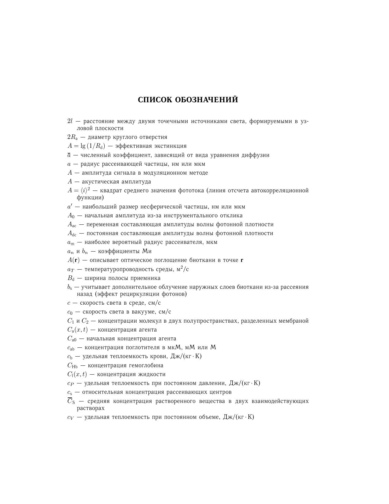 Монография предназначена научным работникам, преподавателям, аспирантам и студентам старших курсов, специализирующимся в области физики живых систем, биомедицинской оптики и биофотоники, лазерной биофизики и применения лазеров в биомедицине. Монография может быть полезна как учебное пособие студентам физических, технических, биологических и медицинских специальностей.