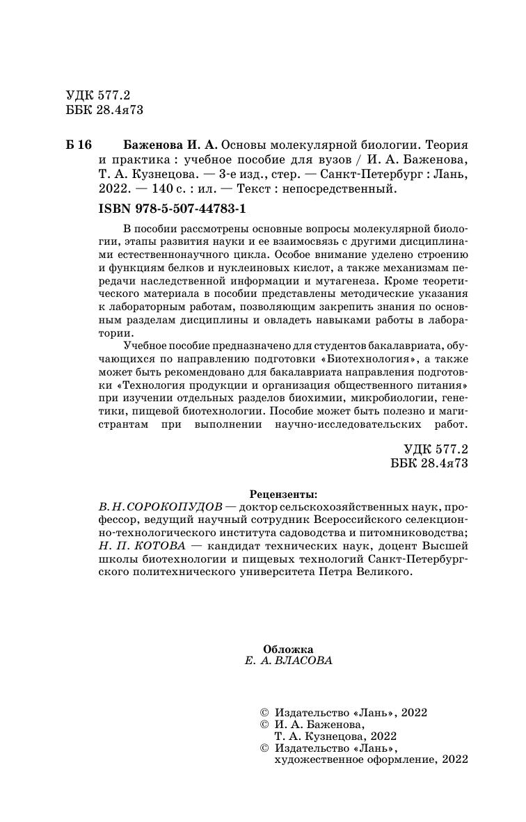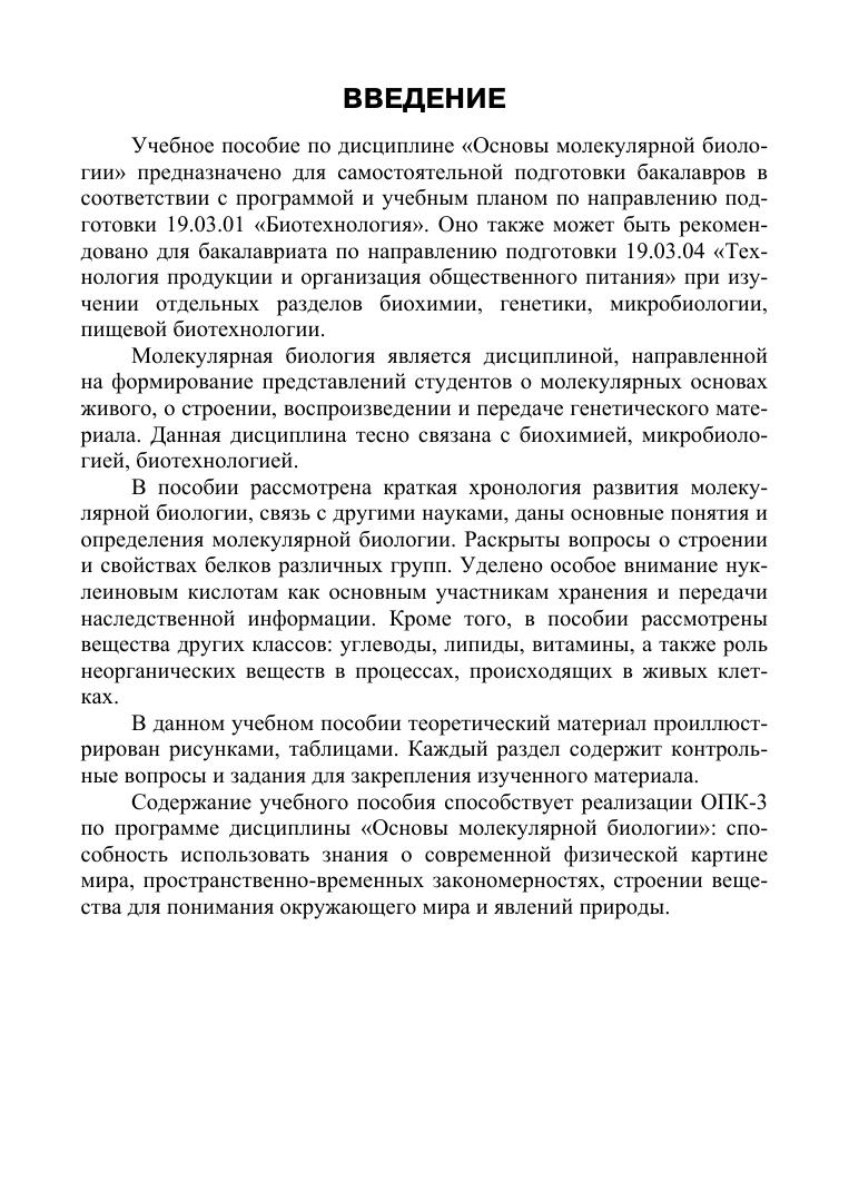 В пособии рассмотрены основные вопросы молекулярной биологии, этапы развития науки и ее взаимосвязь с другими дисциплинами естественнонаучного цикла. Особое внимание уделено строению и функциям белков и нуклеиновых кислот, а также механизмам передачи наследственной информации и мутагенеза. Кроме теоретического материала в пособии представлены методические указания к лабораторным работам, позволяющим закрепить знания по основным разделам дисциплины и овладеть навыками работы в лаборатории.