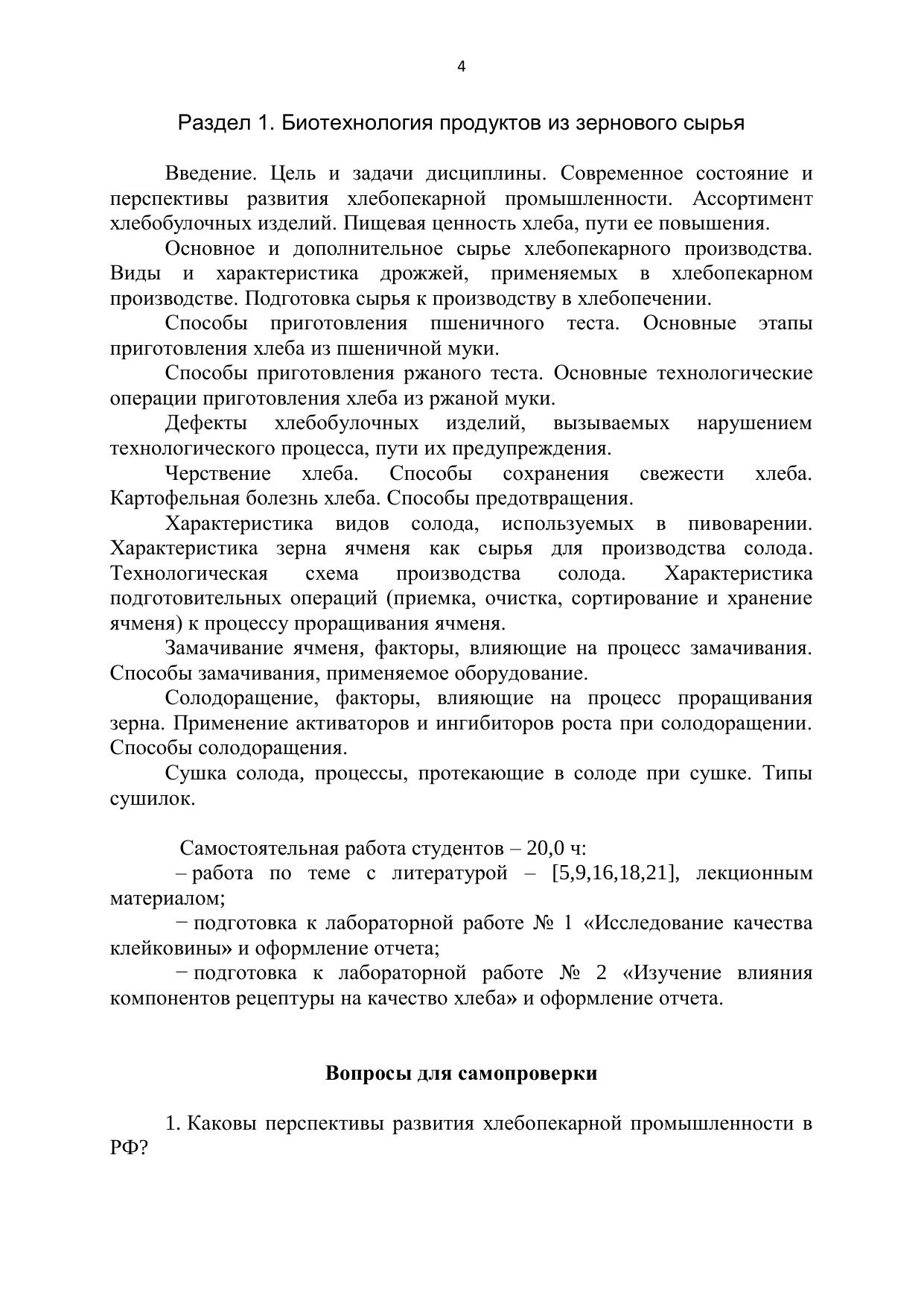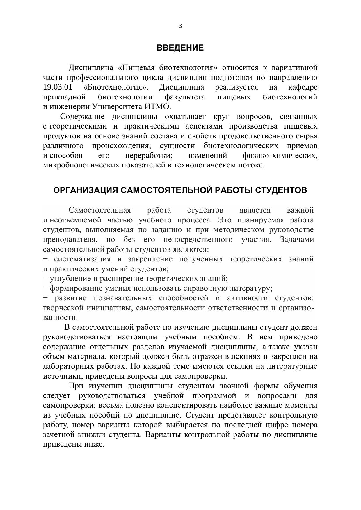 Представлены методические указания к самостоятельной работе студентов, выполнению домашнего задания, лабораторных работ по дисциплине «Пищевая биотехнология», варианты контрольных работ для студентов заочной формы обучения. Учебно-методическое пособие предназначено для студентов направления бакалавриата 19.03.01 «Биотехнология» очной и заочной форм обучения