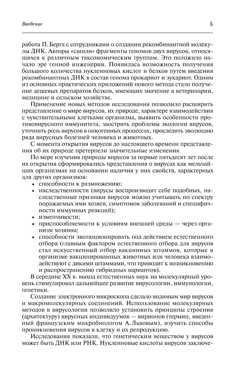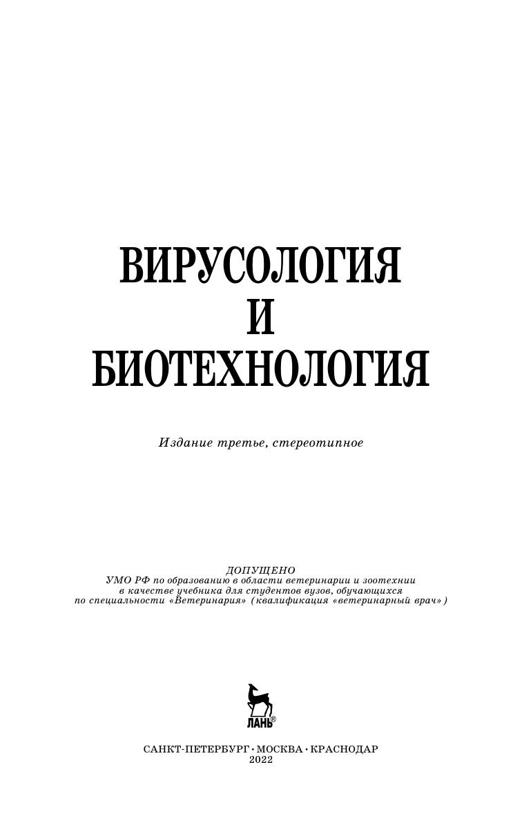 Рассмотрены вопросы общей вирусологии и биотехнологии. Дана характеристика и описаны особенности вирусов, бактериофагов и прионов. Изложены особенности противовирусного иммунитета, специфической профилактики и диагностики вирусных болезней. Даны основы биотехнологии и генной инженерии в области вирусологии. Учебник предназначен для студентов вузов, обучающихся по специальности «Ветеринария».