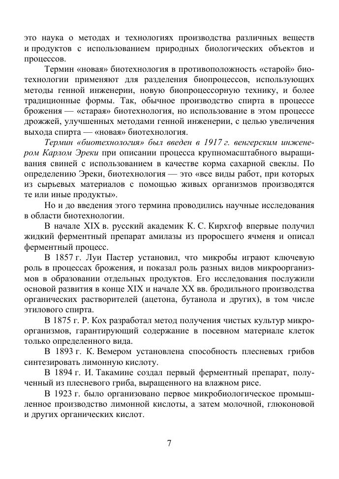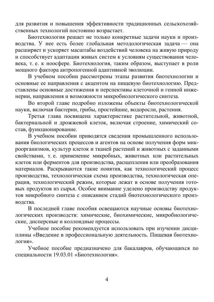 В учебном пособии рассмотрены этапы становления и основные направления биотехнологии, представлены объекты биотехнологии и характеристика растительной, животной, бактериальной и дрожжевой клеток, раскрываются такие понятия, как технологический процесс производства, технологическая схема производства, технологическая операция, технологический режим, рассматриваются общая биотехнологическая схема производства продуктов микробного синтеза, а также научные основы биотехнологических процессов. Учебное пособие предназначено для бакалавров, обучающихся по направлению «Биотехнология», профиль подготовки «Пищевая биотехнология».