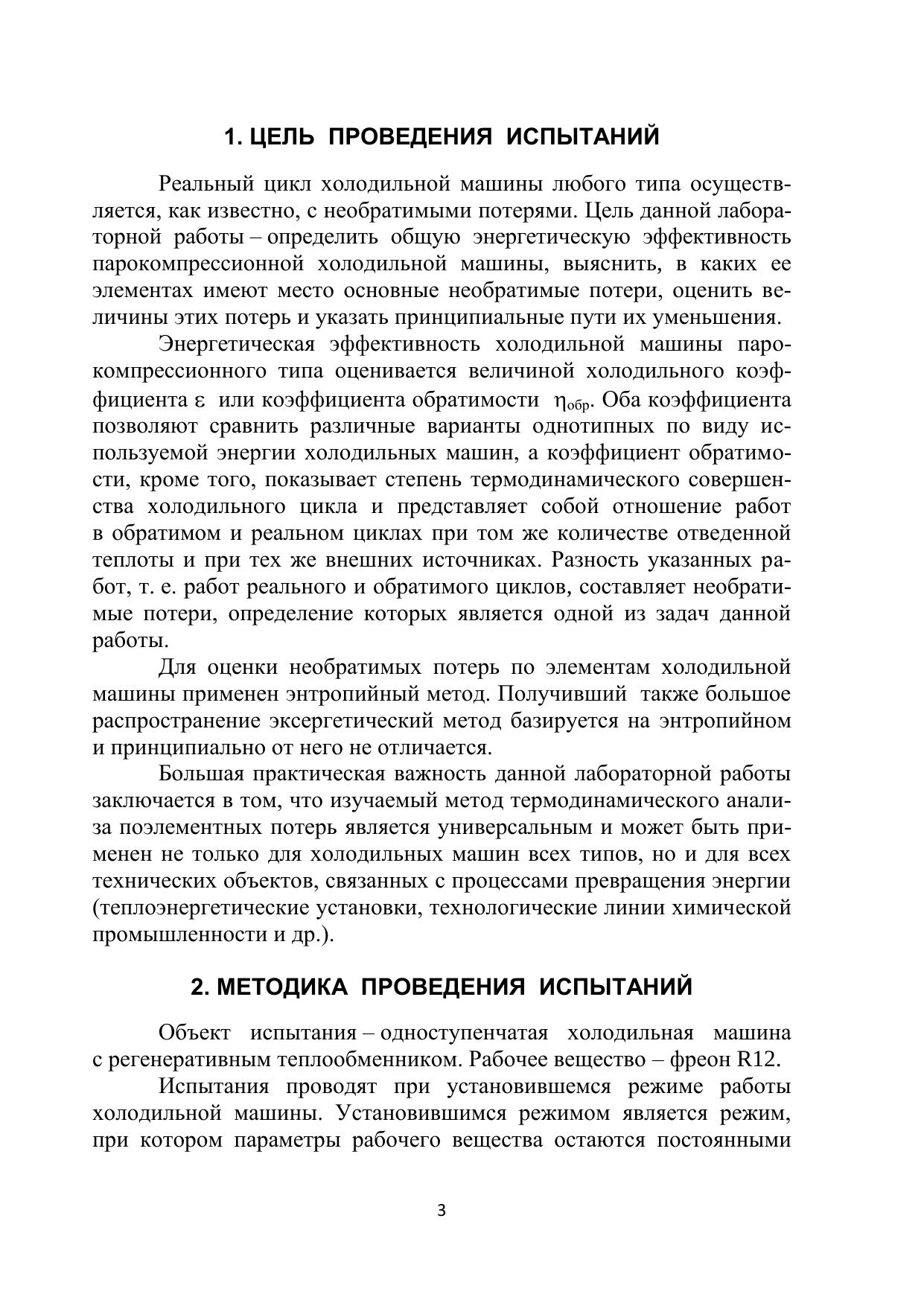 Рассмотрены порядок проведения и методики обработки результатов лабораторной работы по испытанию одноступенчатой холодильной машины. Даны уравнения для определения необратимых потерь компрессора, конденсатора, дроссельного вентиля и испарителя. Предназначено для магистрантов направления 141200 Холодильная, криогенная техника и системы жизнеобеспечения всех форм обучения.