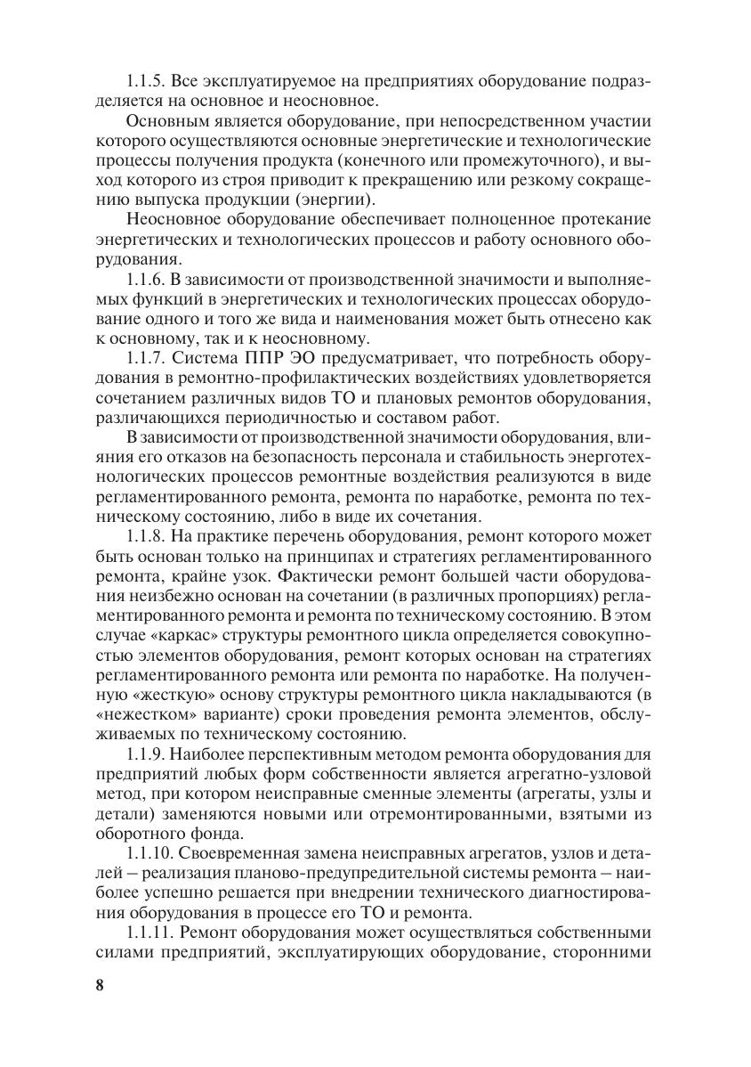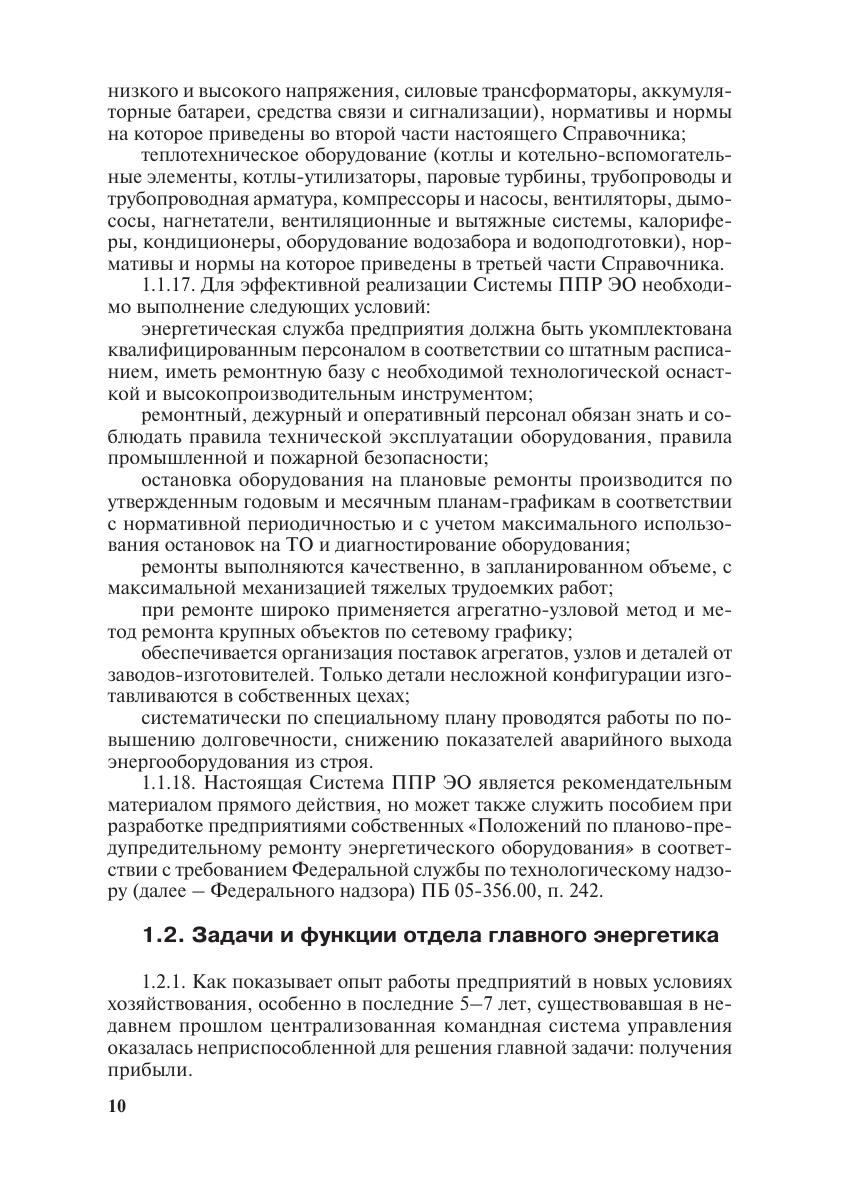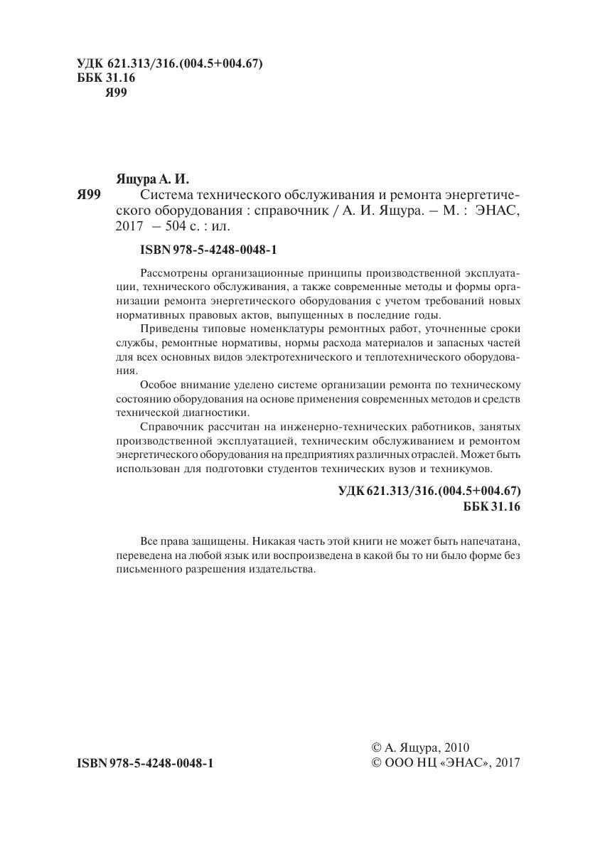 Рассмотрены организационные принципы производственной эксплуатации, технического обслуживания, а также современные методы и формы организации ремонта энергетического оборудования с учетом требований новых нормативных правовых актов, выпущенных в последние годы. Приведены типовые номенклатуры ремонтных работ, уточненные сроки службы, ремонтные нормативы, нормы расхода материалов и запасных частей для всех основных видов электротехнического и теплотехнического оборудования. Особое внимание уделено системе организации ремонта по техническому состоянию оборудования на основе применения современных методов и средств технической диагностики. Справочник рассчитан на инженерно-технических работников, занятых производственной эксплуатацией, техническим обслуживанием и ремонтом энергетического оборудования на предприятиях различных отраслей. Может быть использован для подготовки студентов технических вузов и техникумов.