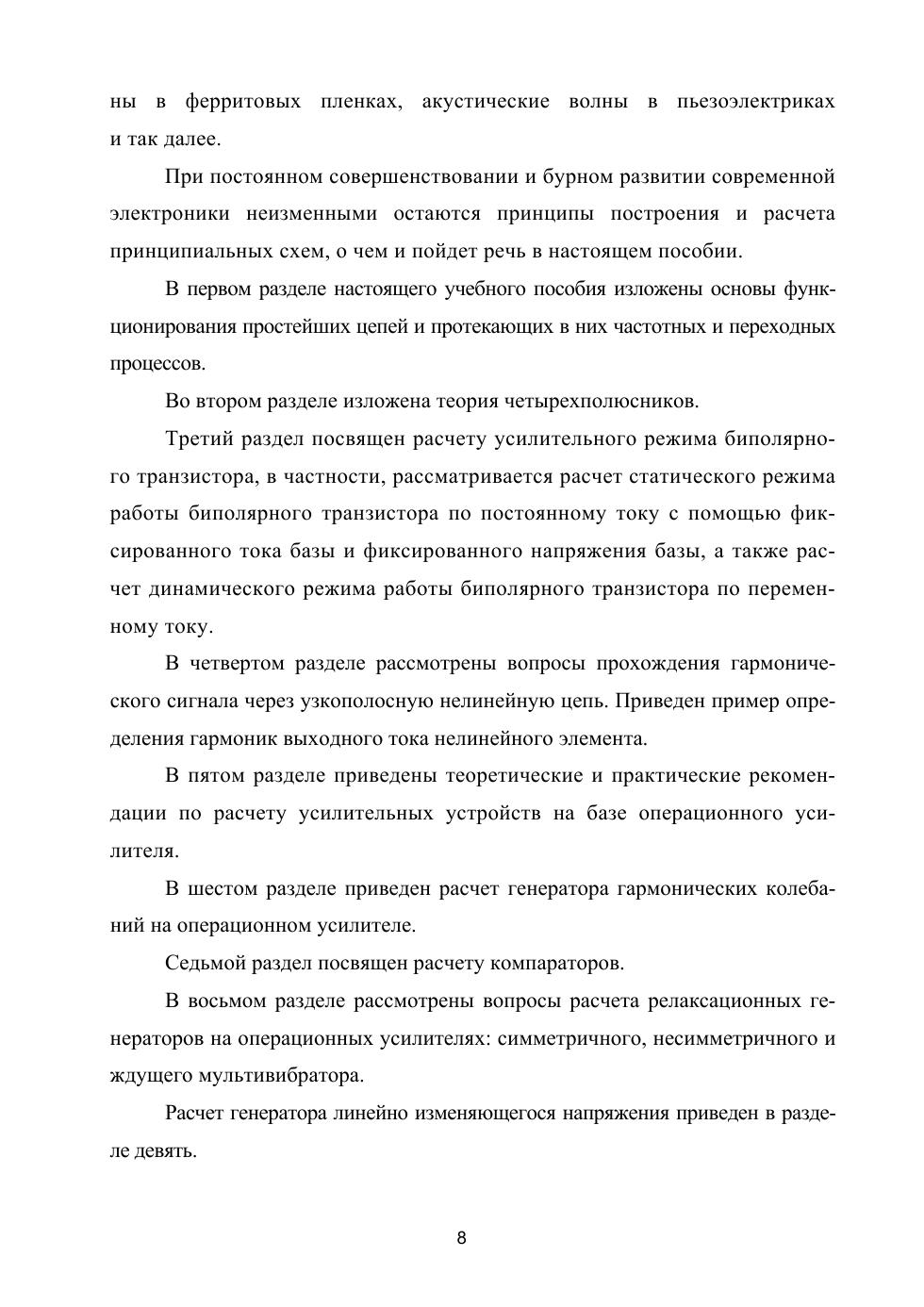 Пособие предназначено для практических занятий по аналоговой электронике и курсового проектирования. Подробно рассмотрены принципы работы схем на пассивных и активных элементах. Рассмотрены примеры расчетов аналоговых схем на транзисторах и операционных усилителях, используемых в современной технике: расчет усилительных каскадов на транзисторах по постоянному и переменному току, усилители на ОУ, компараторы, мультивибраторы, генераторы гармонических колебаний, ГЛИН, транзисторные ключи. Приведен расчет рекомендуемого задания по курсовой работе. В приложениях представлены образцы заданий для контрольных и самостоятельной работ студента по каждой теме, а также примеры заданий по курсовому проектированию. Учебное пособие предназначено для студентов, обучающихся по направлениям группы «Электроника, радиотехника и системы связи» и другим направлениям среднего профессионального образования.
