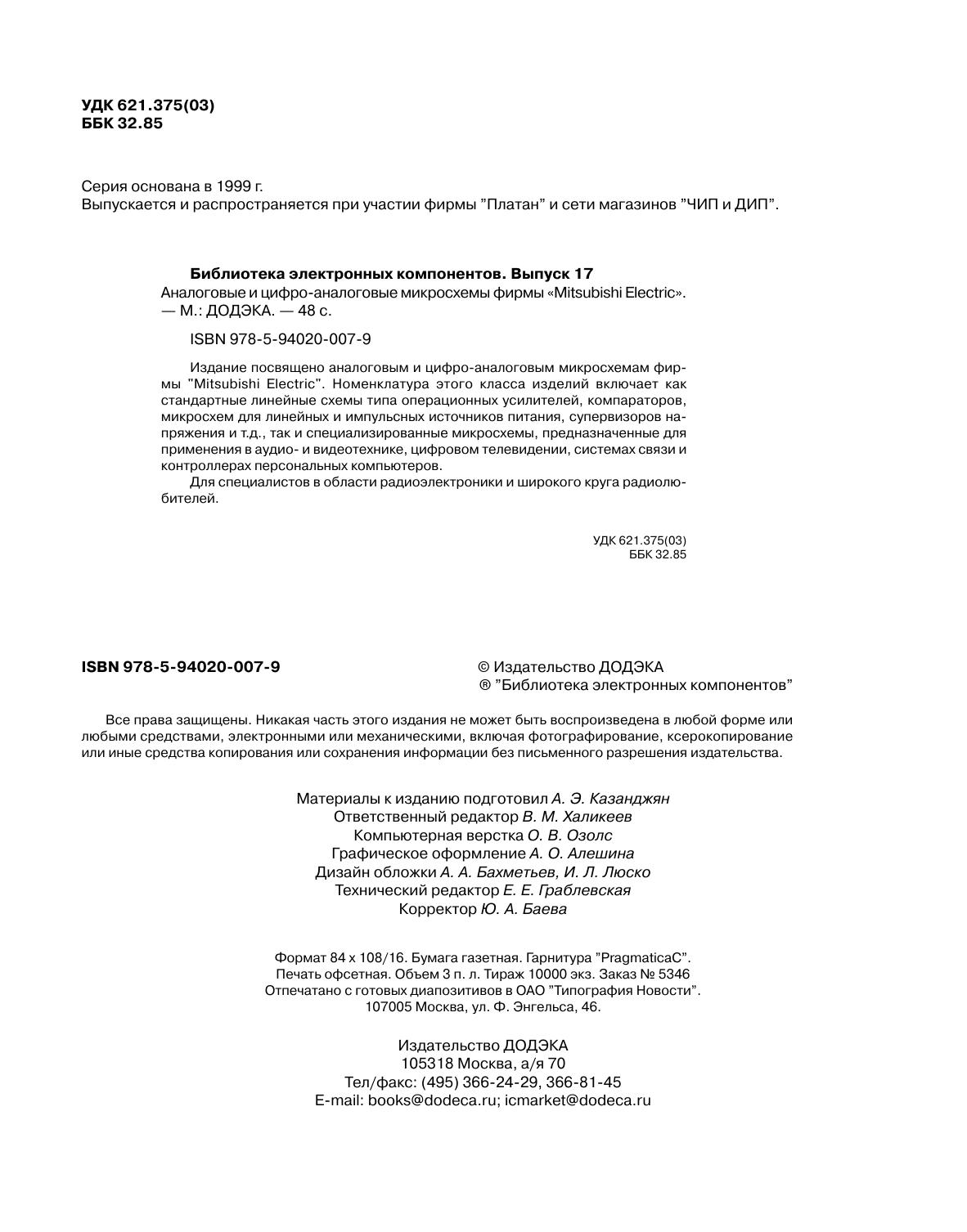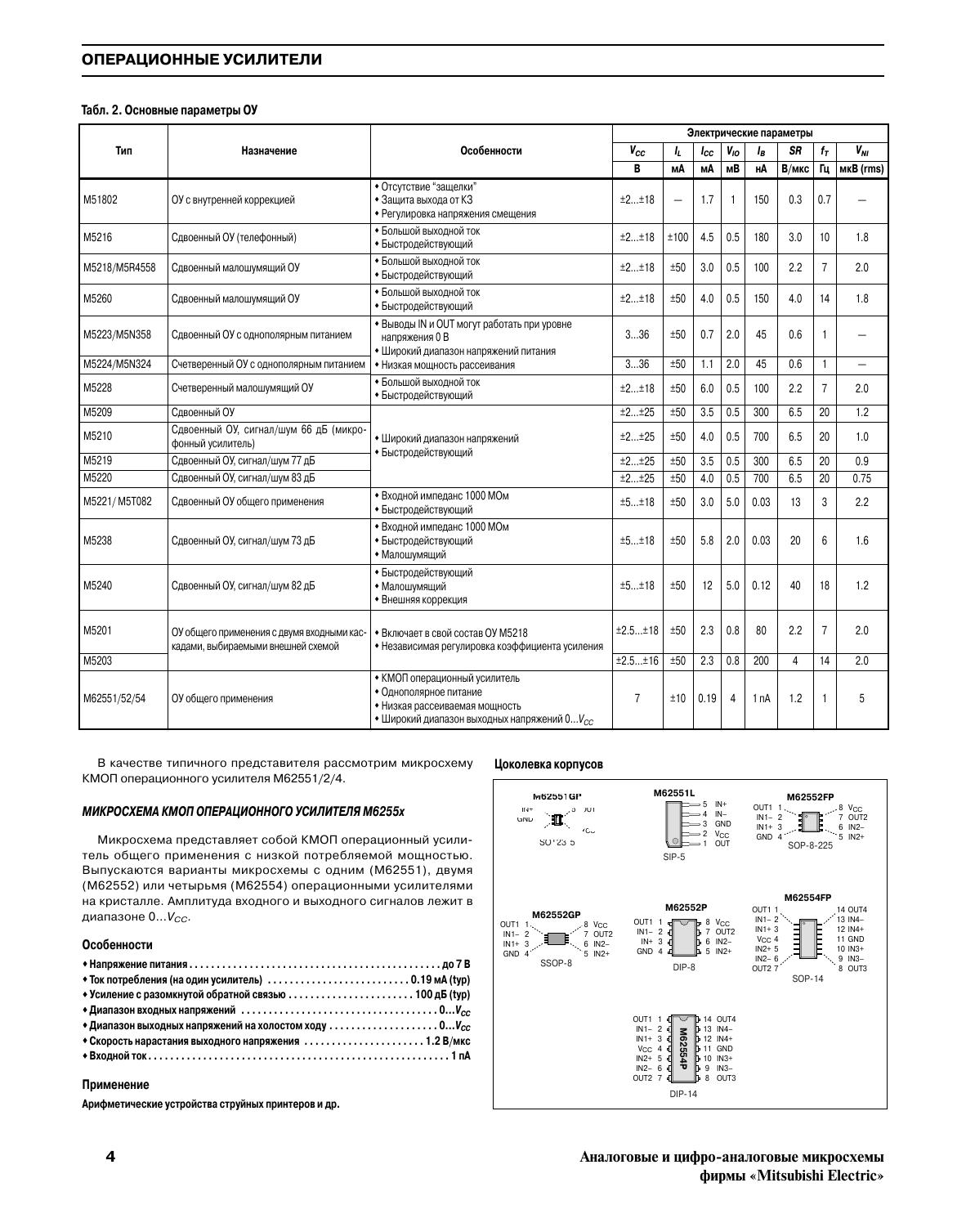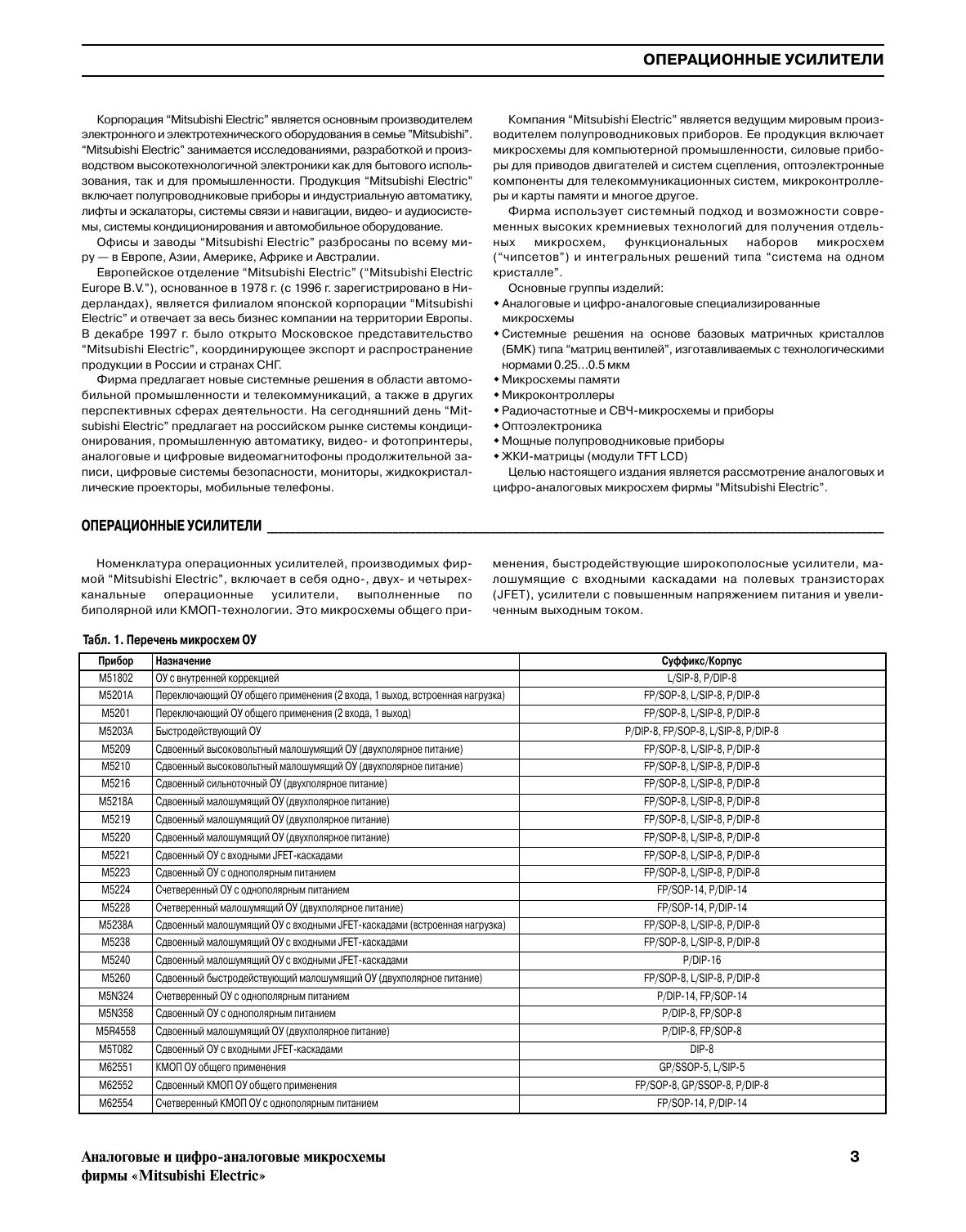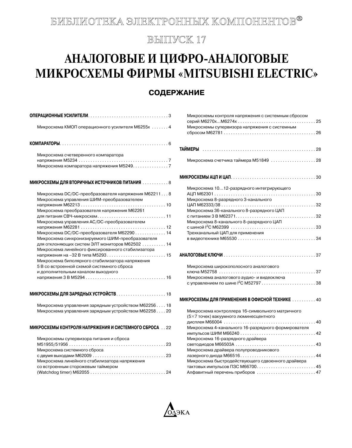 Аналоговые и цифро-аналоговые микросхемы фирмы Mitsubishi Electric