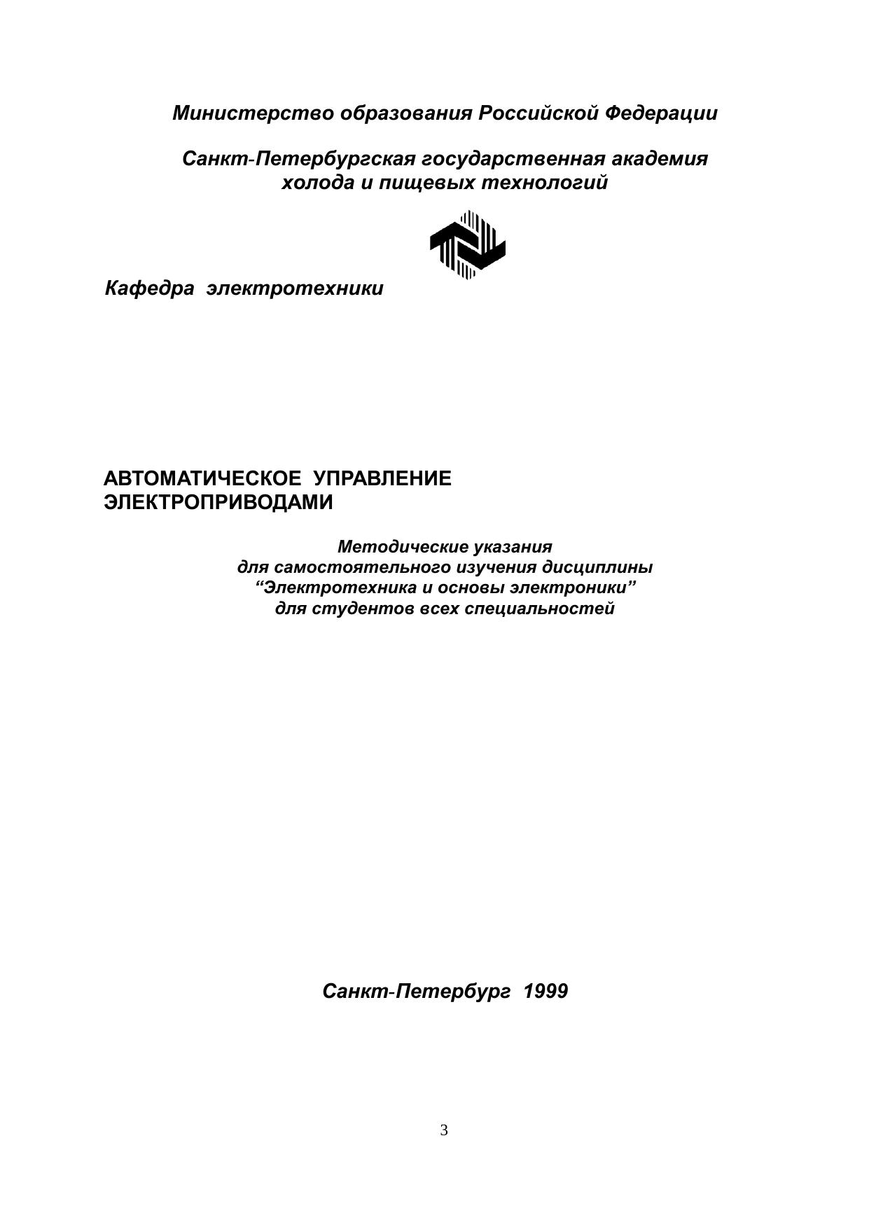Автоматическое управление электроприводами: Методические указания для самостоятельного изучения дисциплины "Электротехника и основы электроники" для студентов всех спец.