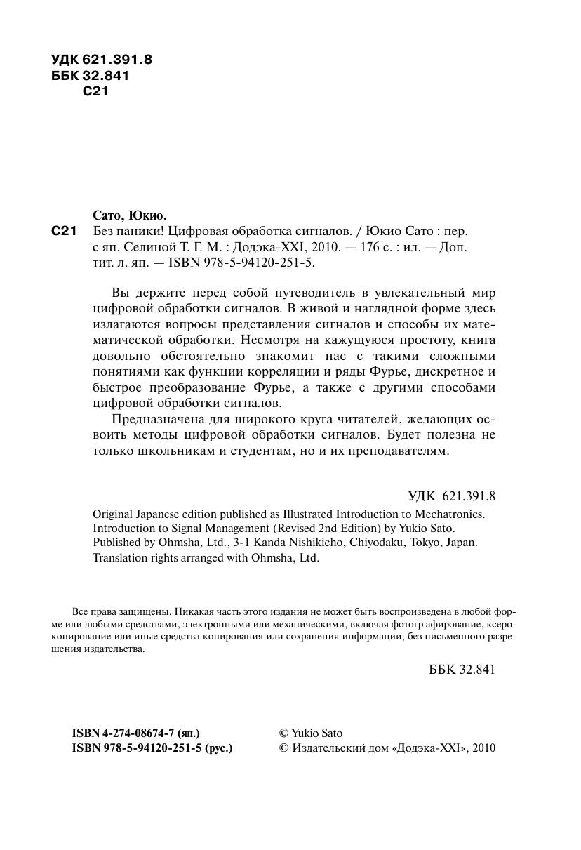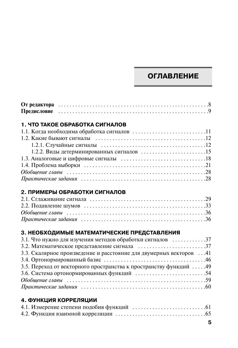 Вы держите перед собой путеводитель в увлекательный мир цифровой обработки сигналов. В живой и наглядной форме здесь излагаются вопросы представления сигналов и способы их математической обработки. Несмотря на кажущуюся простоту, книга довольно обстоятельно знакомит нас с такими сложными понятиями как функции корреляции и ряды Фурье, дискретное и быстрое преобразование Фурье, а также с другими способами цифровой обработки сигналов. Предназначена для широкого круга читателей, желающих освоить методы цифровой обработки сигналов. Будет полезна не только школьникам и студентам, но и их преподавателям.
