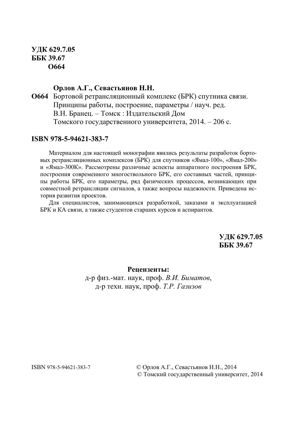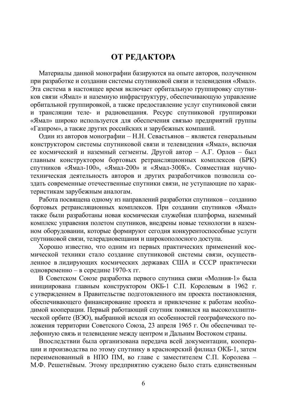 Материалом для настоящей монографии явились результаты разработок бортовых ретрансляционных комплексов (БРК) для спутников «Ямал-100», «Ямал-200» и «Ямал-300К». Рассмотрены различные аспекты аппаратного построения БРК, построения современного многоствольного БРК, его составных частей, принципы работы БРК, его параметры, ряд физических процессов, возникающих при совместной ретрансляции сигналов, а также вопросы надежности. Приведена история развития проектов. Для специалистов, занимающихся разработкой, заказами и эксплуатацией БРК и КА связи, а также студентов старших курсов и аспирантов.