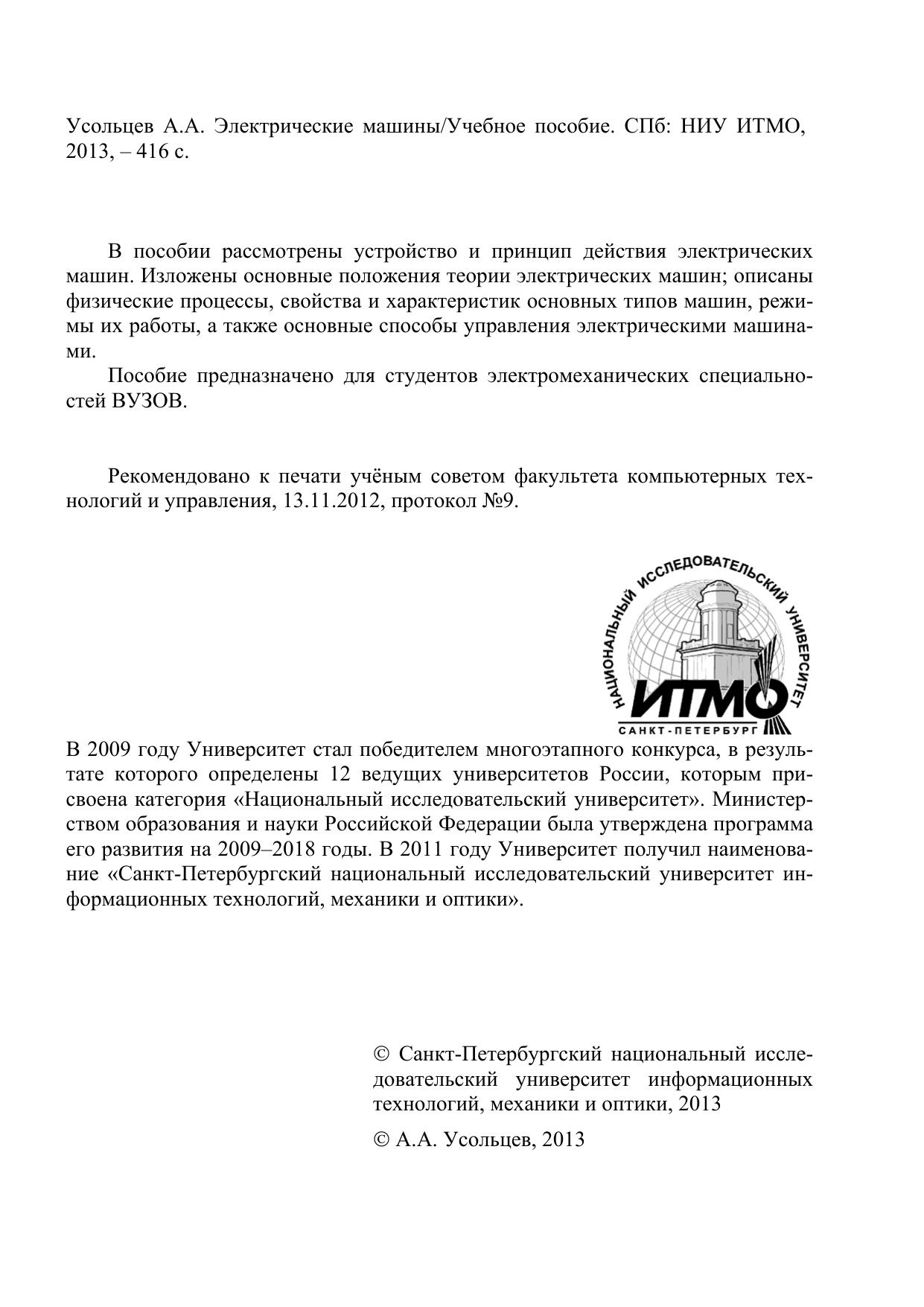 В пособии рассмотрены устройство и принцип действия электрических машин. Изложены основные положения теории электрических машин; описаны физические процессы, свойства и характеристик основных типов машин, режимы их работы, а также основные способы управления электрическими машинами.