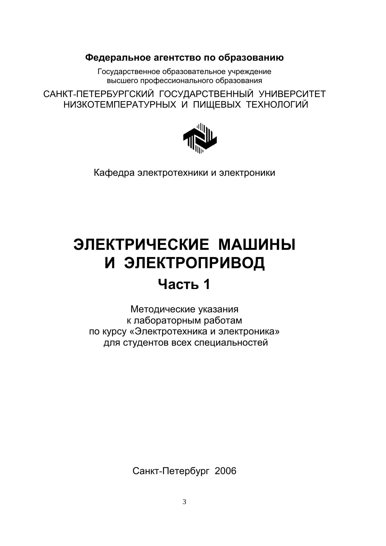 Электрические машины и электропривод. Часть 1. Метод. указания к лабораторным работам по курсу «Электротехника и электроника» для студентов всех специальностей