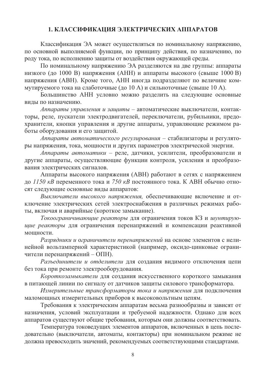 Рассматриваются физические процессы и явления, происходящие в аппаратах. Излагается краткая теория функционирования основных электрических аппаратов, принцип действия, применение и выбор аппаратов.