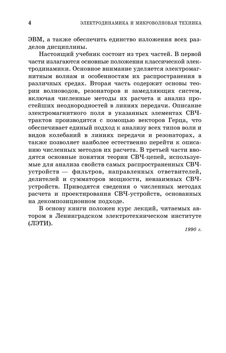 Допущено Мин.обр.и науки РФ в качестве учебника для студентов ВУЗов, обучающихся по спец-сти "Электронные приборы и устройства" направления подготовки "Электроника и микроэлектроника". В учебнике излагаются основы классической электродинамики, рассматриваются распространение электромагнитных волн микроволнового диапазона в различных средах, линиях передачи, резонаторах, многоплечих устройствах, теория возбуждения резонаторов и линий передачи, различные неоднородности в них. Описываются основные методы компьютерного моделирования микроволновых электромагнитных полей. Излагается теория микроволновых цепей. Рассматриваются основные типы линейных микроволновых устройств.