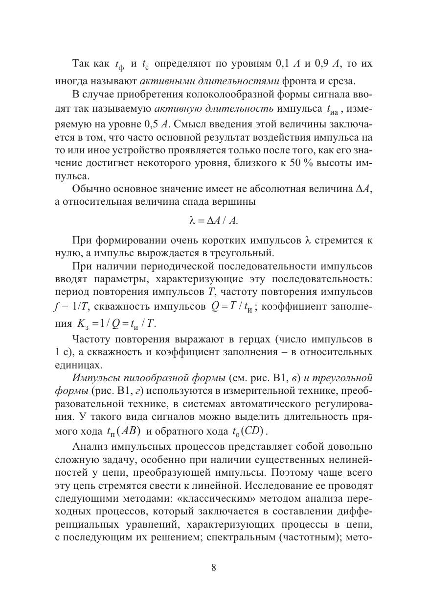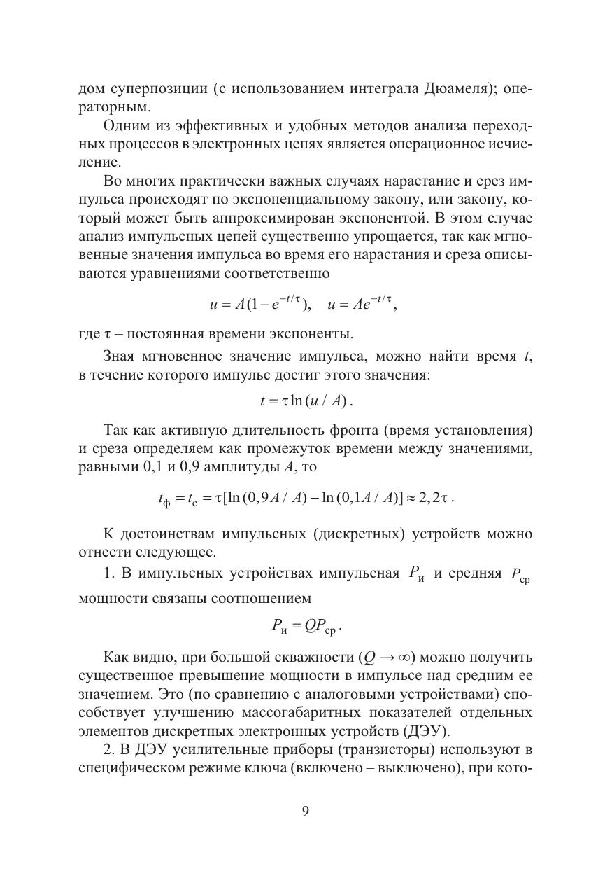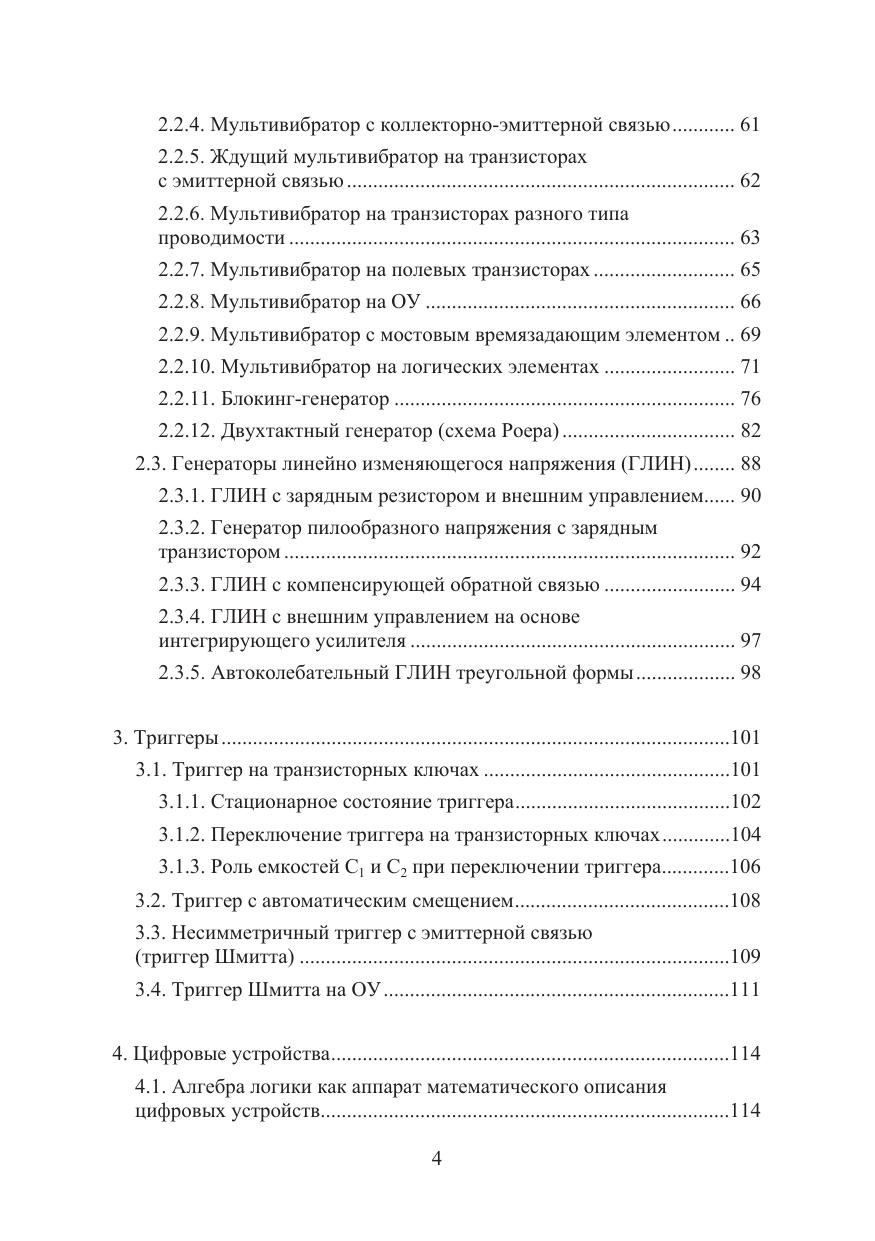 Рассматриваются принципы построения и свойства устройств на транзисторах и интегральных элементах, работающих в импульсном режиме. Даны основы построения устройств комбинационной логики: шифраторов, мультиплексоров, триггеров, регистров, счетчиков, сумматоров. Излагаются основы построения и свойства таких базовых схем, как мультивибраторы, генераторы линейно изменяющегося напряжения, триггеры, блокинг-генераторы.