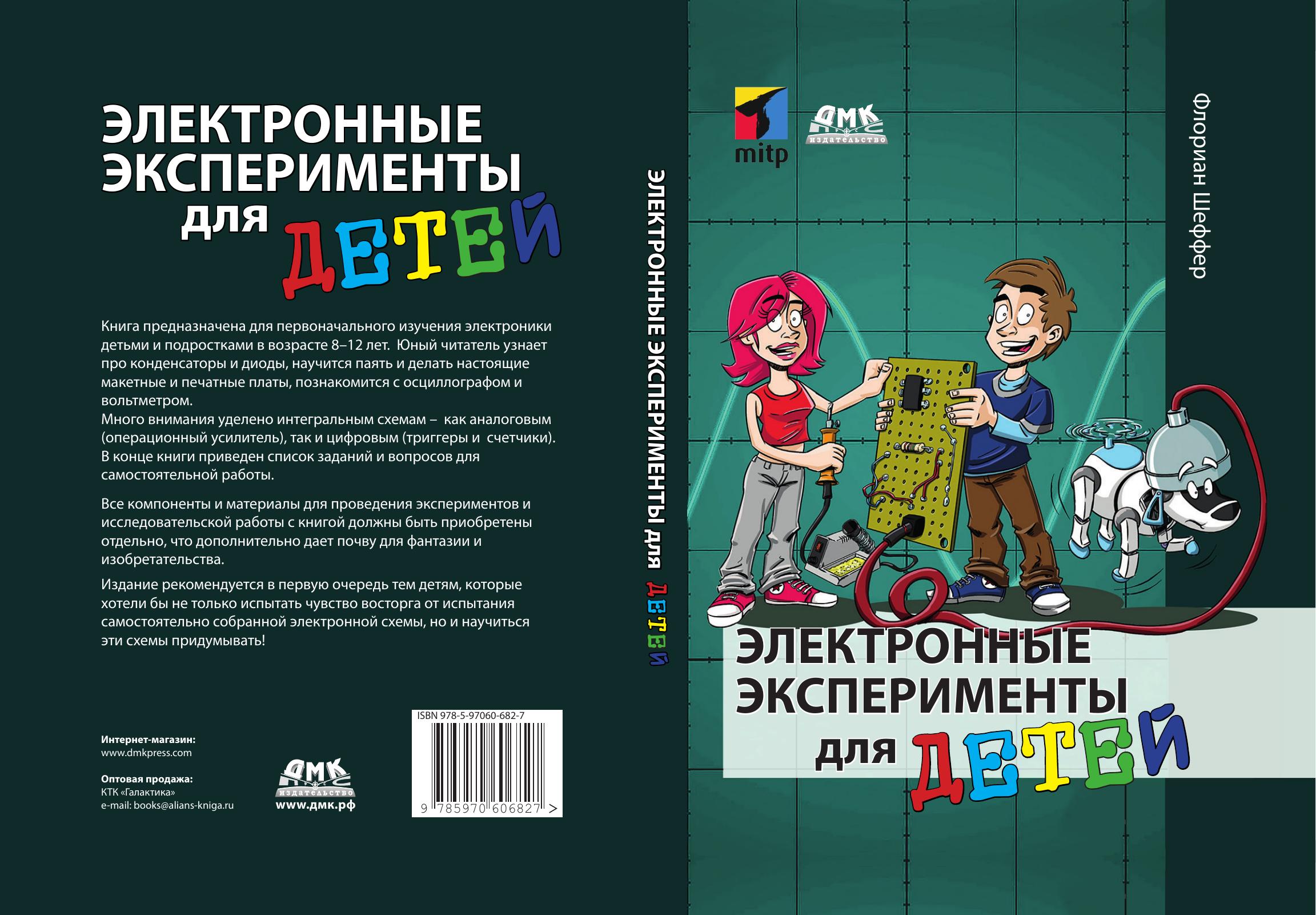 Книга предназначена для первоначального изучения электроники детьми и подростками в возрасте 8-12 лет. Юный читатель узнает про конденсаторы и диоды, научится паять и делать настоящие макетные и печатные платы, познакомится с осциллографом и вольтметром.