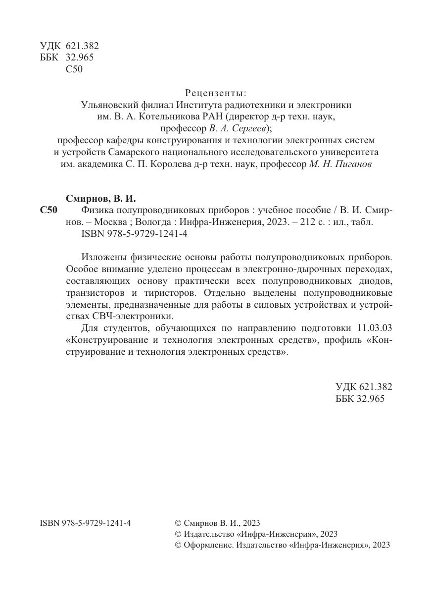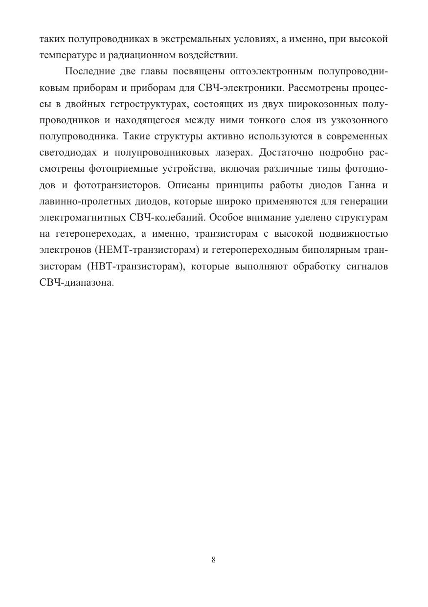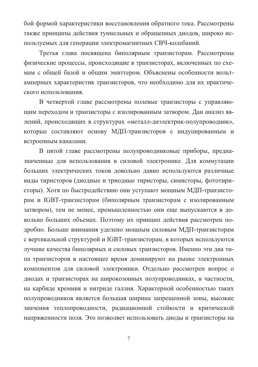 Изложены физические основы работы полупроводниковых приборов. Особое внимание уделено процессам в электронно-дырочных переходах, составляющих основу практически всех полупроводниковых диодов, транзисторов и тиристоров. Отдельно выделены полупроводниковые элементы, предназначенные для работы в силовых устройствах и устройствах СВЧ-электроники.