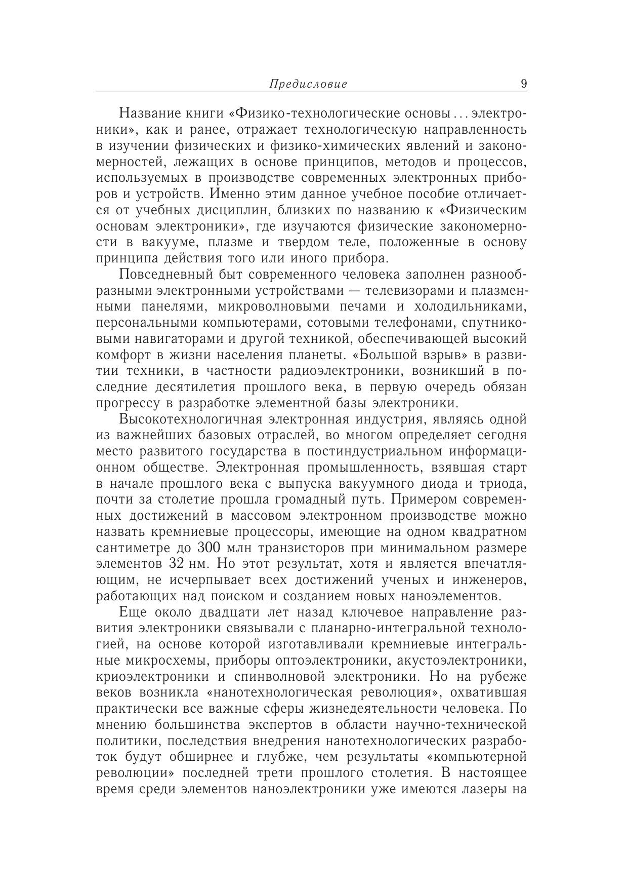 Книга посвящена основным физическим явлениям и закономерностям, лежащим в основе технологических методов и процессов современной электроники. Особое внимание уделено наноматериалам и перспективным направлениям нанотехнологии. Изложение построено так, чтобы дать читателю возможность самостоятельно сформировать общие физико-технологические представления, как правило, без обращения к другой литературе. Для изучения отдельных вопросов в конце книги приведен список рекомендуемой литературы. Книга предназначена главным образом студентам как учебное пособие по физико-технологическим основам современной электроники в ее широком понимании, включающем макро-, микро- и нанотематику, но может оказаться полезной и специалистам в этих областях.