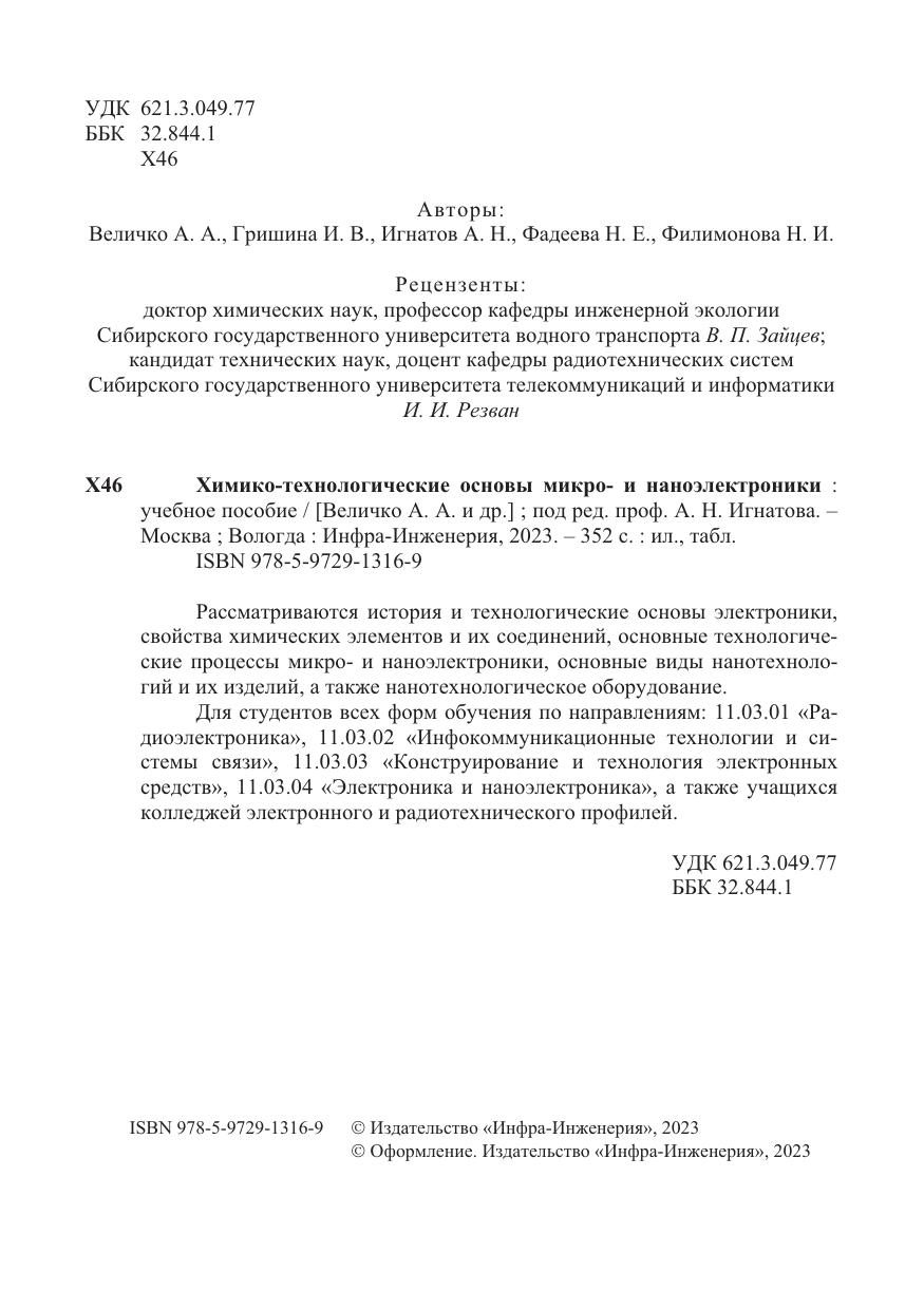 Химико-технологические основы микро- и наноэлектроники